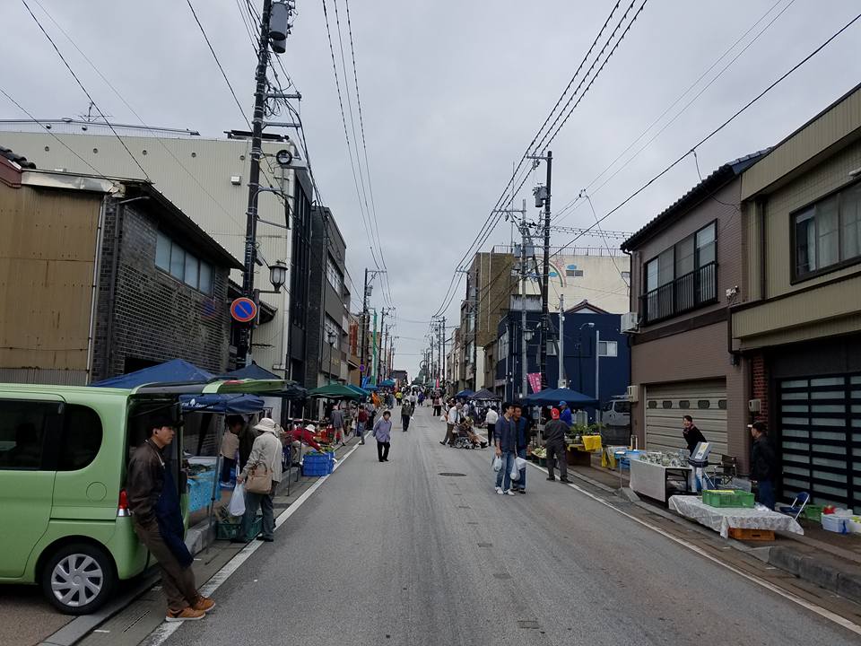 4月から10月までの第2・第4日曜日に、高岡大仏前の坂下町通りで開催されている「たかおか朝市」。