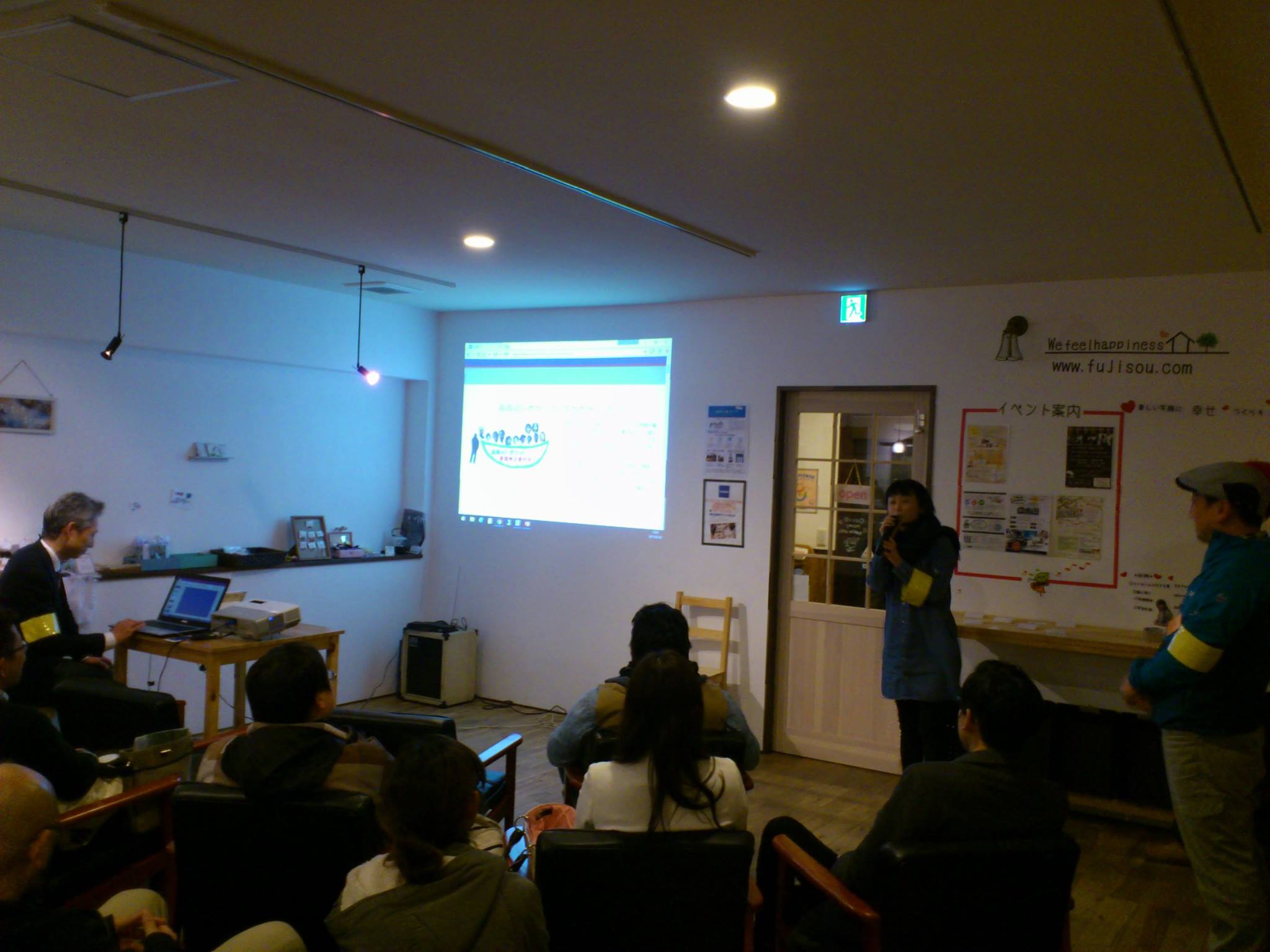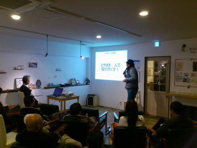 たかおか朝市実行委員会の松本光司さんによるプレゼン『大仏様とたかおか朝市』と意見交換、