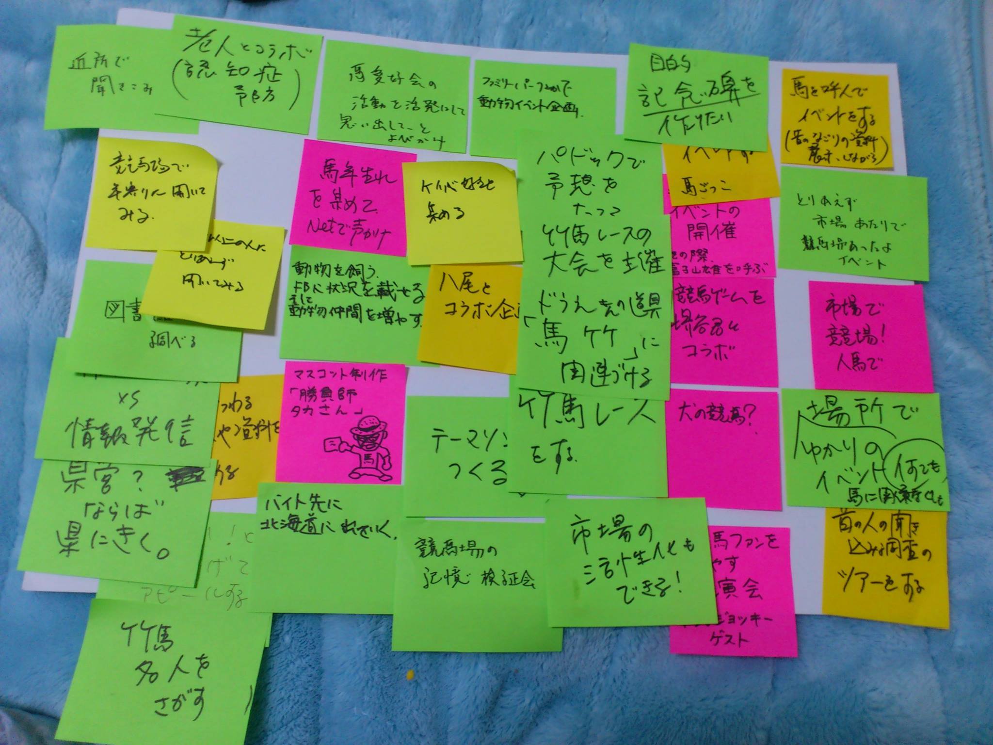 大雑把なアイディア出しテーマでしたが、参加者の皆様にユニークなアイディアを出していただき、高岡競馬活動の第一歩を踏み出すことができたなと思います。