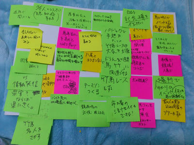 アイディア出しのテーマは、「高岡競馬場を忘れないために、高岡競馬場の存在を伝えていくために、私は何から始めたらいいでしょうか」。