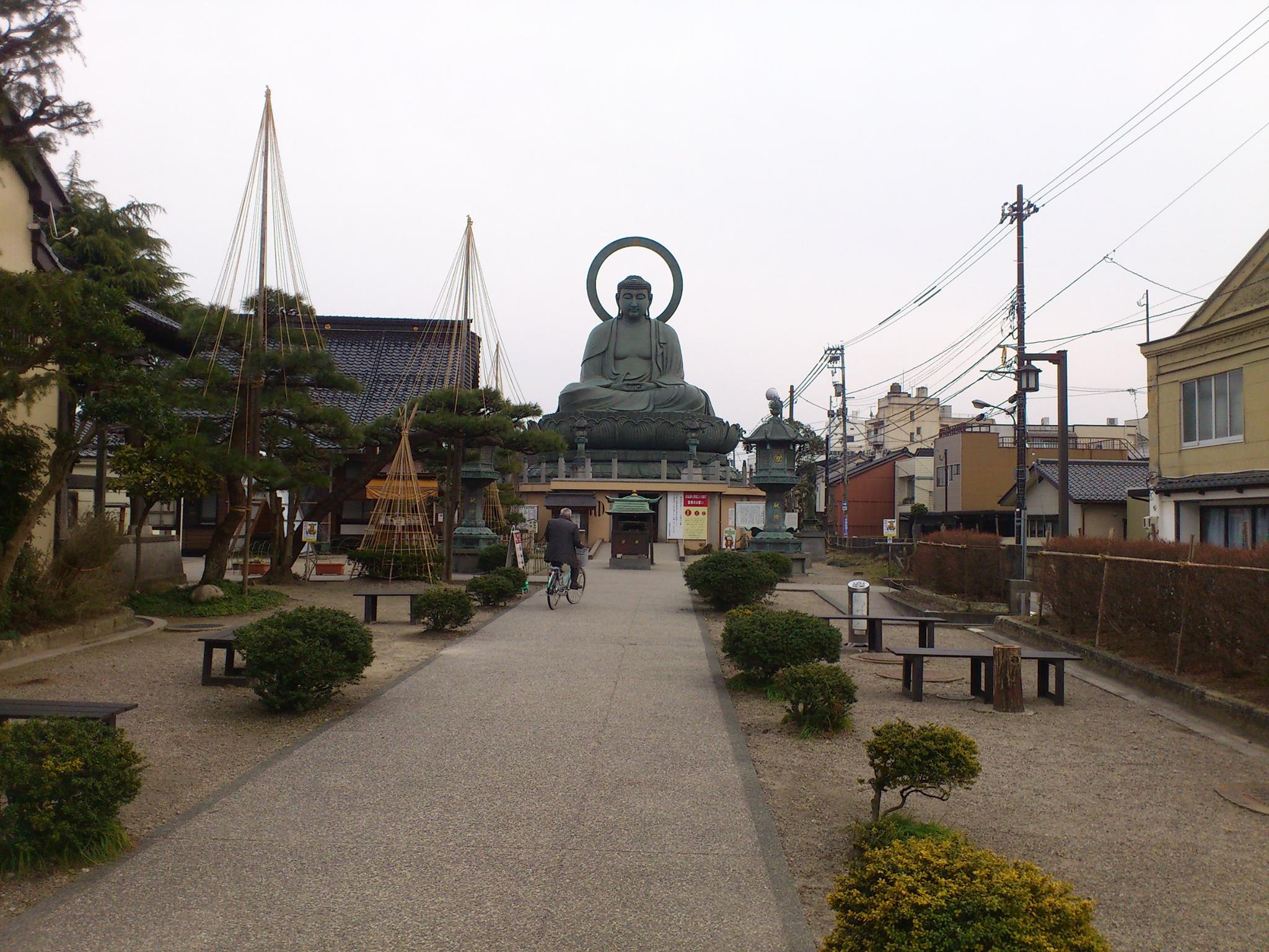 高岡大仏の起源は1609(慶長14)年、加賀藩2代藩主前田利長が二上山麓から移した木造仏と伝わる。その後、2度の焼失を経て、1933(昭和8)年に町民らが出資して3代目に当たる銅製の大仏が完成し、現在に至っている。