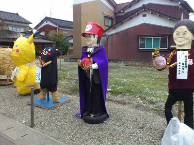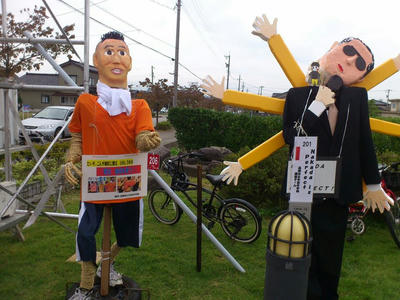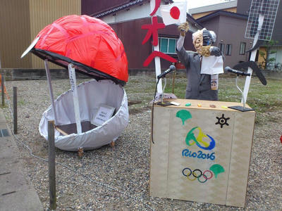 イベント参加報告 2016/09/27 【イベント参加報告】第33回 中田かかし祭(9/24) 9月24日(土)、「第33回 中田かかし祭」に、今年も足を運びました。会場の、中田中央公園に入ったところに、今年「24時間テレビ」のチャリティマラソンランナーを務めた林家たい平さんのかかしがありました。かかし祭お馴染み、木曾義仲にちなんだ作品。高岡出身の金メダリスト・登坂絵莉選手、射水出身の金メダリスト・田知本遥選手、閉会式での「安倍マリオ」など、リオデジャネイロオリンピックにちなんだ作品。熊本県の復興を祈る作品。NHK朝ドラ「とと姉ちゃん」の、「森田屋の大将」。新旧東京都知事。「この姿、昔はデート、今介護」「ポケモンGO」にちなんだ作品。今年も、ユニークな作品がたくさん揃っておりました。見ていて楽しかったです。 http://kirittotakaoka.ria10.com/houkoku/201609271600【イベント参加報告】第33回 中田かかし祭(9/24)
