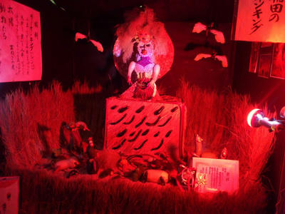 イベント参加報告 2016/09/28 【イベント参加報告】福岡町つくりもんまつり 全36作品紹介(1)~(10) 9月24日(土)。午前は「金屋町楽市 in さまのこ」に、昼から「第33回 中田かかし祭」に足を運びました。夕方からは、「福岡町つくりもんまつり」へ。今年は36作品が福岡町中心市街地各所に展示。もちろん、今年も全作品を歩いて巡りました。作品は1箇所ではなく色んな場所に点在しているため、全作品を見るには結構な時間がかかります。というわけで、当ブログで全作品を紹介したいと思います。数が多いので、4回に分けます。今回はまず、(1)~(10)の作品です。(1)鬼たいじ(次勝作品)製作者:爆笑会とゆかいな仲間たち展示場所:中島宅前 空き地(2)菜獣戯画製作者:鳥取大学展示場所:中島宅前 空き地常連となりました、鳥取大学の作品です。(3)福岡町へポケモンGO製作者:富山銀行福岡支店展示場所:福岡駅前今年の流行です。(4)機関車トーマス製作者:西日本鉄道OB会 高岡支部福岡分会展示場所:福岡駅前小さい頃、きかんしゃトーマスが苦手だったことを思い出しました。(5)福岡「野猿公苑」製作者:西日本鉄道OB会 高岡支部福岡分会展示場所:福岡駅前(6)末広蘭綾王(優勝作品)製作者:末広町自治会展示場所:福岡にぎわい交流館名物・巨大作品です。今年福岡駅前にオープンしました、福岡にぎわい交流館「フクール」での展示でした。(7)高岡信用金庫福岡支店製作者:高岡信用金庫福岡支店展示場所:高岡信用金庫福岡支店作品名・製作者・展示場所が全く同じというレアなパターン。(8)花電車(次勝作品)製作者:橋上町自治会展示場所:中田建設駐車場(9)橋上っ子といっしょにおどろう!製作者:橋上町児童クラブ展示場所:橋上町交差点(10)日本三景と松島と五大塔(次勝作品)製作者:橋上町寿会展示場所:稲毛畳店車庫 http://kirittotakaoka.ria10.com/houkoku/201609280000【イベント参加報告】福岡町つくりもんまつり 全36作品紹介(1)~(10)