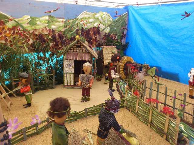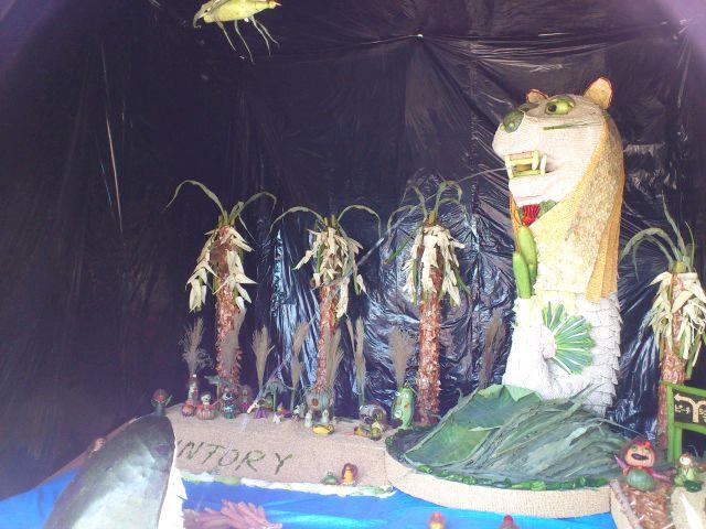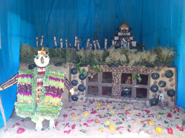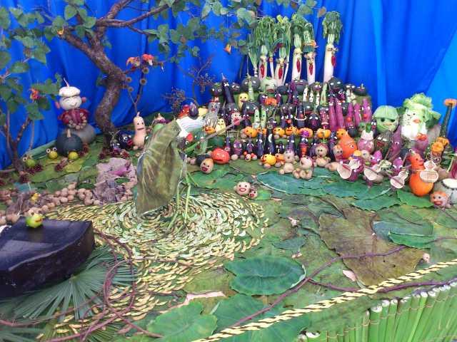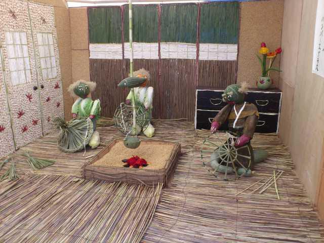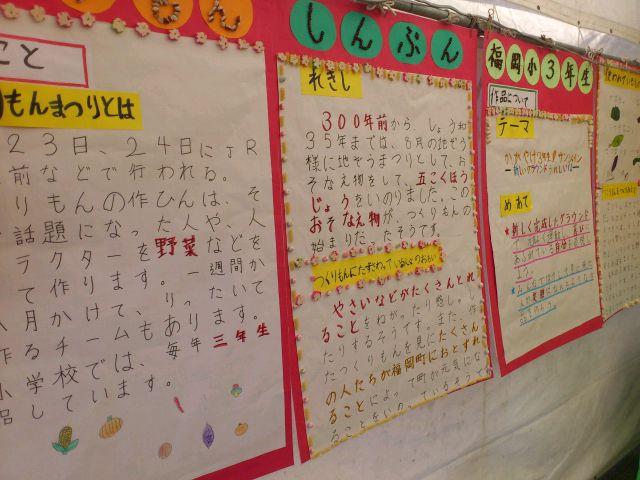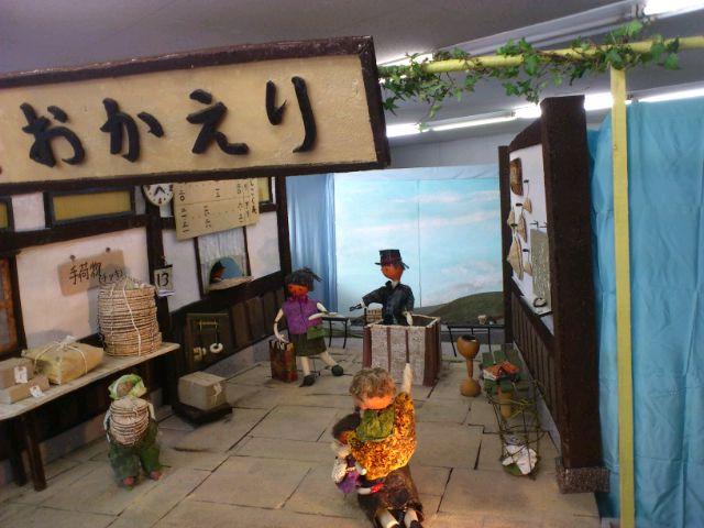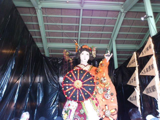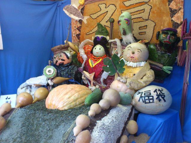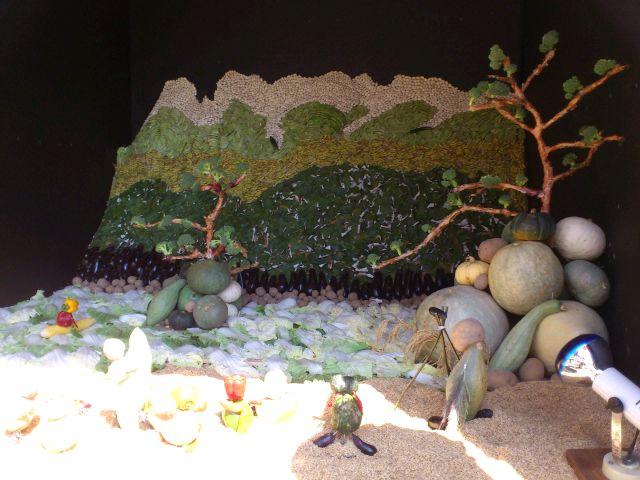 イベント参加報告 2014/09/23 福岡町つくりもんまつりに行ってきました(9/23) 今日は福岡町つくりもんまつりに行ってきました。中田かかし祭りに続き、今回初めて行きました。福岡町の中心市街地に、42の「つくりもん」が展示されていました。今回は、その一部をご紹介したいと思います。(作品番号は無料パンフレットに書かれていたもので、ブログでの掲載順は私が見た順番です。したがって、番号順になっていませんので予めご了承ください ^^;)(1)曳山(さくらの木歯科隣)制作:爆笑会とゆかいな仲間たちまずはこちらから目に入りました。偶然、作品No.も1番でした(笑)立派な曳山の形ですが、これも野菜や果物で創られた「つくりもん」なのです。(3)午(うま)(福岡駅前テント)制作:西日本鉄道OB会高岡支部今年の干支ですね。サラブレッドっぽいのが嬉しいところです。(5)僕等の街に新幹線がやって来る(福岡駅前テント)制作:高岡法科大学学生会大学生による作品です。かかし祭り同様、新幹線関連の作品が多かったですね。戸出七夕まつりのマスコットキャラクター「たなっちょ」の赤は、唐辛子で彩られているので辛そうでした。(4)富山銀行60周年 番犬トミーとフナッシー(福岡駅前テント)制作:富山銀行福岡支店かかし祭り同様、ふなっしーが各所におりました。(9)ワールドカップ(旧高岡信金跡テント)制作:京都文教大学わざわざ京都から大学生の方が作品を展示されていました。今年はサッカーワールドカップがありましたね。すっかり忘れていました(笑)(25)福を運ぶ新幹線(石澤宅車庫)制作:中央通自治会七福神が乗っているのは、写真では切れてしまっているので分かりにくいですが新幹線です。(26)北陸新幹線とその愉快な仲間たち(北陸銀行福岡支店車庫)制作:北陸銀行福岡支店ふなっしー、くまモン、そして入善町のジャンボ~ル三世がいます。こちらでも、新高岡駅「かがやき」停車を求める声。(23)かがやけ3年生!Sunshine -新しいグラウンドうれしいな-(ミュゼふくおかカメラ館駐車場)制作:福岡小学校3年生小学生の皆様による作品が並べられております。また、小学生の皆様によるつくりもんまつりの紹介もありました。(21)全国ご当地キャラ大集合!(ミュゼふくおかカメラ館駐車場)制作:高岡向陵高校 生活系・情報系こちらは高校生の皆様の作品。北から南まで全国各地のご当地キャラがいました。(19)秋(ミュゼふくおかカメラ館前駐車場)制作:堀川町自治会秋の農村の風景でしょうか。やはり秋の収穫がテーマのお祭りですから。奥にはかかしもありました。(18)地球の仲間たち(大野てる子宅車庫)制作:キラッと福岡ネットこちらはたくさんの作品が並べられており、大人気でした。(35)アナと雪の女王(旧上田酒店)制作:大蔵町自治会大ヒットのこの映画もつくりもんになりました。豆で制作したそうです。(34)つくりもんビフォアーアフター(旧中田米穀店)制作:大蔵町自治会上がbefore:300年前の地蔵祭の風景下がafter:現在のつくりもんまつりの風景なんということでしょう!!(お決まりの)(39)軍師官兵衛(小林務宅車庫)制作:旭町自治会今年のNHK大河ドラマもつくりもんとして登場です。(38)雨晴から立山連峰を望む(みゆき美容院車庫)制作:早稲田町自治会高岡が世界に誇る絶景も、つくりもんで表現されました。(41)旭町 第九(四十一万地蔵隣テント)制作:旭町自治会第九の演奏風景。個人的には一番感動したかもしれません。(32)伝統のスゲ笠作り(北陸電力営業所跡地)制作:中町自治会福岡町を代表する伝統産業・菅笠作りもつくりもんで表現されました。(30)まぁ!ライオン?(仁寿酒販倉庫)制作:新栄町自治会言うまでもなく、シンガポールの「マーライオン」です(笑)本当に水が出ていました。ちなみに、この作品は唯一国道8号線から確実に見える場所にあります。(他にも国道8号線沿いにある作品はいくつかありますが、だいたいテントの中で見えなかったりするので・・・)(29)ふなっしー(富山第一銀行福岡支店)制作:富山第一銀行福岡支店ふなっしーだけでなく、くまモンもいました。(6)末広藤娘(JAいなば倉庫)制作:末広町自治会おそらく唯一の巨大作品。写真の下の方に人の頭が見えるので、巨大であることはお分かりいただけると思います。(8)'絆' おかえり(JAいなば倉庫)制作:地域女性ネット高岡 福岡地区婦人会心温まる、「おかえり」の風景です。というわけで、福岡の街をぐるーっと回って、色んな「つくりもん」作品を目にすることができました。最初にも書いた通り今回が初めてでしたが、野菜や果物でここまでクオリティの高いものができるんだなと、とにかく感動させられました。本当に素晴らしいお祭りなんだなと実感いたしました。見に行くことができて良かったです。さて、福岡町つくりもんまつりは明日まで開催されております。明日は平日ではありますが、お時間のある方はぜひ福岡町に足をお運びください。 http://kirittotakaoka.ria10.com/houkoku/201409232000福岡町つくりもんまつりに行ってきました(9/23)