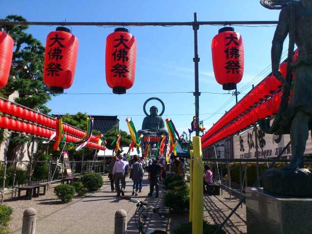 イベント参加報告 2014/09/23 高岡大仏まつり・動物園まつりにも足を運びました(9/23) 今日はつくりもんまつりを見て、無料シャトルバスを使わず北陸本線で高岡駅に戻った後、高岡大仏まつり開催中の高岡大仏へ。「お身拭い」は終了しておりましたが、このように賑わっておりました。年に一度のお身拭いを終え、綺麗になった大仏様。同じく、綺麗になった大仏様の背中。大仏様のイケメン横顔。再び正面。さて、やけに近くから撮っているなぁと思いませんか?そうです、実は、大仏様の台座の上から撮っているのです!今日は、滅多に登れない台座の上に登ることもできました。こんな至近距離で大仏様を見るのは初めてだったので、感動しました。続いて、「動物園まつり」開催中の古城公園動物園にも足を運びました。足を運んだと言っても、ちょっと雰囲気を見てきただけです。というわけで、2日間で4つのお祭りを制覇(?)してきました。またひとつ、知らない高岡の魅力を知ることができました。これからもまた、色々頑張っていきたいなと思います(適当な意気込みだな・・・)。 http://kirittotakaoka.ria10.com/houkoku/201409232130高岡大仏まつり・動物園まつりにも足を運びました(9/23)