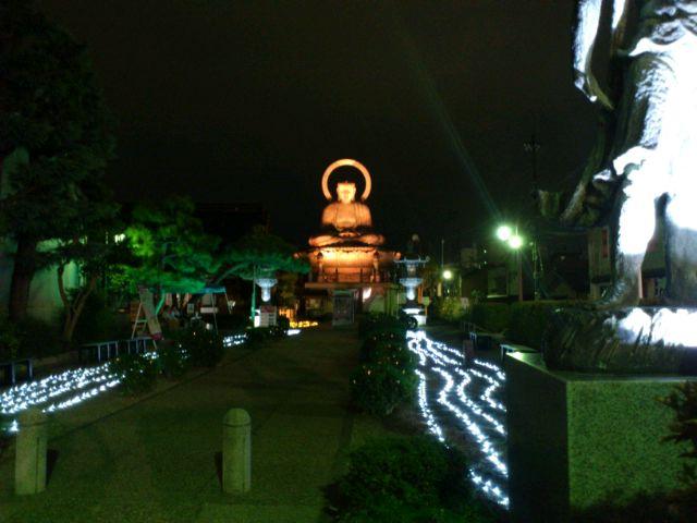 イベント参加報告 2014/10/08 万葉集全20巻朗唱の会へ、約15年ぶりに足を運びました(10/4) ちょっとお久しぶりです。色々飛びまわっていたので、ブログを更新する時間がありませんでした・・・。また、週末の寮祭の心配も色々ありまして、落ち着けない日々を送っていますが(笑)更新を怠ってしまうとどんどん過去の話になってしまうので、いったんここで更新したいと思います。10月3日(金)~5日(日)の3日間、高岡の秋の風物詩「高岡万葉まつり」が開催されました。そのうち3日と5日は、別の場所に飛び回っていたので、4日(土)に足を運んできました。その前に、同じ4日(土)高岡駅地下街にて、獅子舞に親しむイベント「ししあそび」が開催されていたので、足を運びました。獅子頭彫りの実演コーナー。高岡ケーブルテレビの「おしえて!獅子舞テレビ」にも出演中の、高畠久宗さんです。夜、高岡駅前から古城公園へ向かう途中、高岡大仏のライトアップがされていたので、撮影しました。さて、古城公園へ。奥には「万葉集全20巻朗唱の会」の特設ステージが見えます。お濠がとても美しい景色となっていました。光りすぎていてよく見えませんが、「万葉集全20巻朗唱の会」の様子。その名の通り、このステージ上で万葉集全20巻を朗唱する、3昼夜、56時間に及ぶリレーイベントです。実はこの会場に足を運ぶのは、約15年ぶりのことになります。おそらく小学校低学年以来。このイベント、高岡ケーブルテレビのコミュニティチャンネルでも56時半に及ぶ完全生中継を行うのですが、うちの父がかつてケーブルテレビに勤めていたので、夜通し中継の仕事に行っている父に家族で会いに行った、というのが最初で最後だったと思います(笑)「赤い橋」として有名な朝陽橋から、特設ステージ後ろ側を写しました。今まで後ろから見たことは、もちろんありませんでした。赤い橋・朝陽橋も、ライトアップされていました。中の島より、ステージの左側も写してみました。奥で光っているのは、「朝陽の滝」です。というわけで、朝陽の滝まで来てみました。きれいにライトアップされています。さて、こちらがベストショットなのではないでしょうか。お濠の上の特設通路から、ステージを撮影しました。こうして、父にちょっかいかけに行っただけの子ども時代以来、約15年ぶりにちょっとだけ足を運びましたが・・・。とにかくこの美しい雰囲気に圧倒され、改めてすごいイベントなんだなと実感いたしました。また、3昼夜ぶっ通しで行うというこのイベントを25年も続けている関係者・スタッフの皆さんの苦労も感じました。大変だと思いますが、これからも続けて欲しいと思います。そして、来年はぜひ朗唱に参加してみたいなとも思いました。帰り、朝陽橋のベスト撮影スポットから撮ってみましたが・・・。ズーム効かないせいで、分かりにくい写真になってしまいました。そして、なんとなく幻想的な古城公園の通路も撮影してみました。それではまた。 http://kirittotakaoka.ria10.com/houkoku/201410081600万葉集全20巻朗唱の会へ、約15年ぶりに足を運びました(10/4)
