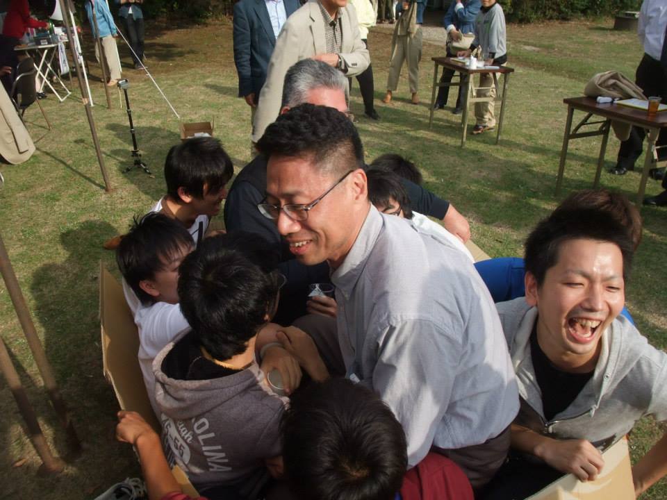 高岡市学生寮 2014/10/17 高岡市荻布学生寮創立50周年記念寮祭(10/12) 10月12日(日)、高岡市出身の大学生が生活する東京の荻布学生寮にて、50周年記念寮祭が開催されました。今回は、そのレポートを書きたいと思います。・10月11日(土)寮祭前日、高岡出発大学卒業・荻布寮卒寮以来、約半年ぶりの東京。その移動手段は・・・レンタカー。高岡と、その周辺在住のOB5人で、交代しながら運転し東京・荻布寮まで移動しました。11日(土)8時半頃にレンタカーを借り、他の皆さんを迎えに行き、黒部ICで北陸自動車道に入り、「26のトンネル」を越えて上信越自動車道に入り、この妙高サービスエリアまで運転しました。昼食は群馬県に入った横川サービスエリアで。なんと、「おぎのや」という釜めし屋がありました!(笑)関越自動車道の所沢ICで高速を降り、そこから下道で東京都小金井市まで向かったわけですが・・・。その下道の渋滞がひどくてひどくて。結局荻布寮の到着は17時半になってしまいました。高岡から東京まで約9時間。想像以上にかかってしまいました・・・。土曜の夜、他のOBは各々東京を楽しむ中、私だけは東小金井を楽しみ、荻布寮時代はお馴染みだったラーメン屋「にんにくや」にも行ってきました。そして、私だけ寮に泊めていただきました。食堂の飾り付け、例年以上にすごいものになっており、びっくりしました!寮祭で行う「OB出し物」の詳細も決定していないのに、他のOBが誰もいないので話しようもない状況でしたが・・・。もう気にせず寝ました(笑)・10月12日(日) 寮祭当日こうして迎えた12日(日)。朝5時に目が覚めて、二度寝もできず。朝7時に風呂掃除を終えた1年生にチェックを頼まれ・・・(笑)何故か一人寮内をうろうろするOBでした。とりあえず、寮祭の看板が立てられた寮の正門を撮ってみました。9時、1週間前の新潟の払い戻しをするために、ほんの一瞬だけ東京競馬場へ行きました(笑)やっぱり東京にいても車は便利です(笑)本当に一瞬だったので、10時には寮に戻りました。寮に戻ってからは、自分にできる準備をあれこれと・・・。寮祭開始前。会場では、北陸新幹線E7系のプラレールが展示されました。寮祭開始直前。特別ゲスト・あみたん娘も準備完了です!・12時30分~ 寮祭スタートこうして12時半、寮祭スタート。開会式にて、あみたん娘が紹介されます。来賓として、高岡市教育委員会の氷見教育長さんが来場されました。また、OB会の辻井会長さんをはじめ、多くの卒寮生も来場されました。開会式が終わってからしばらくはフリータイム。あみたん娘のお二人は、プラレールを組み立てたり食事を楽しんだり。・13時30分~ 荻布寮クイズまずはクイズ開始前の、チーム分け。近隣住民の皆様、富山県学生寮の皆様、卒寮生など、5チームくらいできました。そのうちの1チームは、あみたん娘のお二人と若いOBによる「あみたん娘チーム」でした。この荻布寮クイズは50周年の特別企画。クイズを行う前に、特別に寮の見学会が行われました!2階の小部屋(空き部屋)にて。3階の奥に眠る、謎のお神輿。そして、屋上。荻布寮のマスコットキャラクター「おぎたん」のいる、欅の木をバックに。この他、実際に寮生が生活している部屋(1人分)や、風呂なども見学しました。見学を終えて会場に戻り、クイズに挑みます!クイズに正解すると、「おぎたん」が当たります。「荻布寮のお風呂には頑張れば何人入れるでしょう?」という問題の答え合わせ。浴槽の大きさに合わせて作った段ボールに、次々と入っていったのですが、もはや滅茶苦茶なことをしています(笑)もちろんこんなには入れません(笑)「今年の合同ハイキングはどこへ行ったでしょう?」という問題で、女子寮生がヒント提供。この後、女子寮生による特別クイズもありました。これは何の問題だったかな・・・。規則関連の問題で、問題にない選択肢を答えるOB会長さん(笑)寮生の部屋に関する問題で、Aさん、Bさん、Cさんの3人が登場。それぞれ、どの部屋が誰の部屋でしょうか、という問題だったと思います。そして・・・。「3階の奥に眠っているものは?」という問題の答え合わせで、何十年眠っていたか分からないあのお神輿が、寮祭に登場しました!これは荻布寮の歴史に残るシーンではないでしょうか。長丁場となったこのクイズ。優勝を果たしたのは、あみたん娘チームでした!!優勝者インタビューに答えるあみたん娘・カノン。昨年の寮祭はカノン単独で参加し、じゃんけん大会で見事優勝しましたよね(笑)優勝したあみたん娘チームの、記念撮影。・15時50分頃(?)~ OB出し物で起こった悲劇ビンゴ大会を経て、OB出し物へ。まず、寮祭には3年ぶりの登場、エスパー伊東さん(ニセモノ)による「アツアツおでん、ニコニコ食い」でした。※良い子はマネをしないでください。そして、私が参加したので写真は一切ありませんが・・・。OB3人で、高岡のケーブルテレビでも有名な「まんようせん体操」を踊りました。8月末頃から一