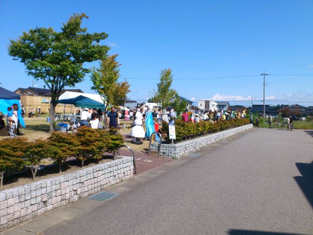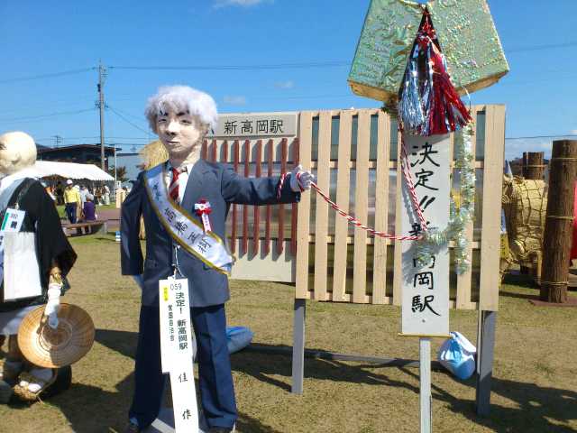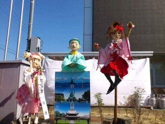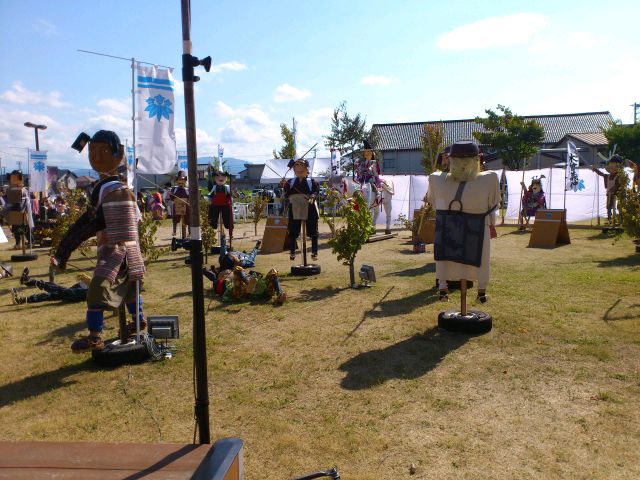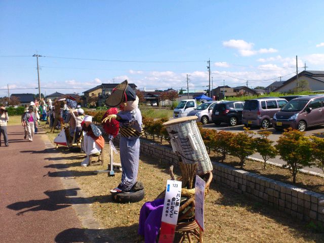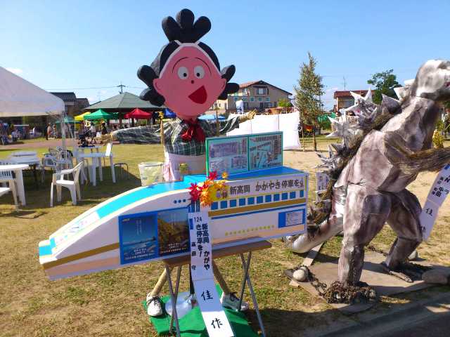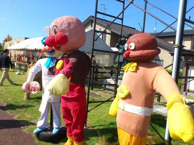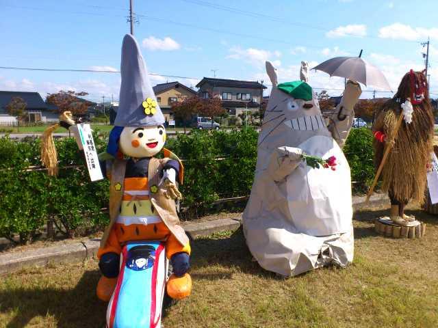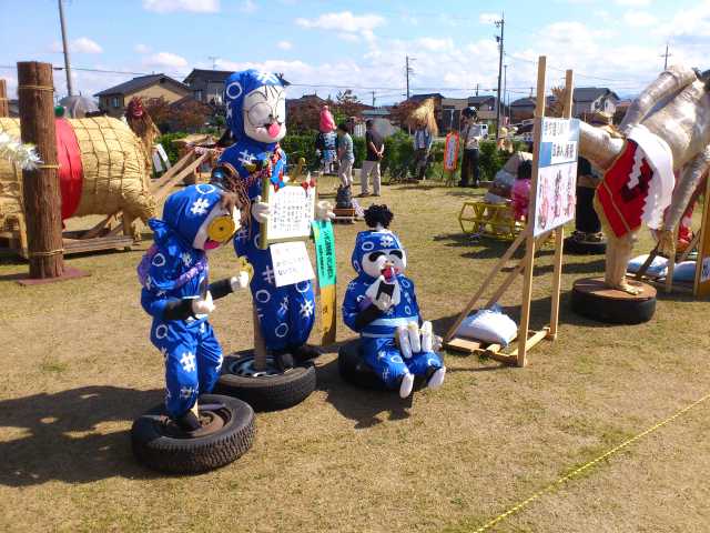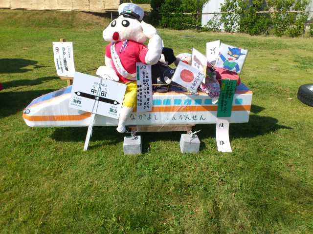 イベント参加報告 2014/09/22 「第31回 中田かかし祭り」に行ってきました!(9/22) 9月21日(日)~23日(祝・火)の3日間、高岡市中田地区を代表するお祭り「中田かかし祭り」が開催中ですが、本日足を運んできました。会場の中田中央公園入口には、アンパンマン、カレーパンマン、そして隠れてしまっていますがジャムおじさんのかかしがありました。クレヨンしんちゃん。E7・W7系新幹線に乗っています。なんと、駅表示板には「中田」と書かれていますね!昨日は新潟競馬場にいた、千葉県船橋市非公認キャラクター「ふなっしー」。中田に3体ほど存在しました(笑)高岡市公式マスコットキャラクター利長くんも、新幹線に乗っています。となりはトトロ。更に隣はなまはげでした。高岡にできる新幹線駅名が「新高岡駅」に決定した時の再現、でしょうか。髙橋正樹市長です。奥には新高岡駅もあります。「忍たま乱太郎」の乱太郎、きり丸、しんべヱの3人。サザエさんも、新幹線に。「かがやき」の停車を訴えています。高岡が生んだ藤子・F・不二雄さんの代表作「ドラえもん」もいました。「ちびまる子ちゃん」の、まる子と友蔵。大ヒットディズニー映画「アナと雪の女王」関連のかかしも、いくつかありました。中田中央公園に並ぶかかしたち。公園の外から、中の様子を撮りました。続いて、中田地区コミュニティセンター周辺会場へ。手前は、北陸新幹線富山県開業PRキャラクター「きときと君」。大人気・熊本県マスコットキャラクター「くまモン」もいました。こちらにも、トトロがいましたよ。そしてそして・・・。高岡市観光大使「あみたん娘」のかかしもありました。再び中田中央公園へ。源平合戦・倶利伽羅峠の戦いがかかしで再現されていました。この合戦で源氏を率いた源義仲(木曾義仲)は、この中田の地において、「弓の清水(ゆみのしょうず)」の伝説を残しました。最後に、再び中田中央公園入口。300年前の中田地区の風景が再現されています。というわけで、今回初めて中田かかし祭りに足を運んでみましたが、想像以上に多彩なかかしが飾られており、とても印象的でした。制作にすごく手間暇かけてるんだろうなぁ。私もかかしを作ってみたくなりました(笑)中田かかし祭りは、明日まで開催されております。明日は祝日ですので、お時間のある方はぜひ足をお運びください。 PR http://kirittotakaoka.ria10.com/houkoku/201409222230「第31回 中田かかし祭り」に行ってきました!(9/22)