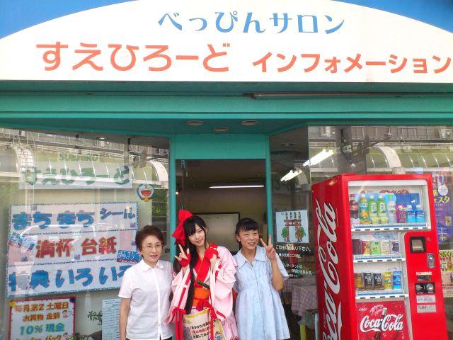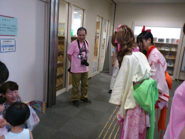 イベント参加報告 2014/08/23 リアル宝探し あみたん娘スペシャルヒントデー(8/23) 7月19日(土)~9月15日(月・祝)、高岡市中心市街地一円にて体験型ゲーム「リアル宝探し 利長伝説名剣の謎」(富山新聞など主催)が開催中ですが、本日8月23日(土)、その宝探しの謎解きスペシャルヒントデーとして、高岡市観光大使「あみたん娘」がヒントを掲げて高岡市中心市街地を巡りました。11時~、12時~、13時~の3回、各20分間、あみたん娘の公式コスプレイヤーさんが高岡駅改札周辺、地下街、ウイングウイング高岡、中心商店街などを回り、謎解きのヒント提供や、リアル宝探しのPR活動などを行っていました。私は、12時と13時の2回分、その様子を見に行ってきました。12時の回は、高岡駅からウイングウイング高岡へ移動。写真は2Fの高岡市立中央図書館前での様子。さすがに図書館の中には入りませんでした(笑)その後、再び高岡駅に戻ると、バスターミナルにはあみたん娘ラッピングバスが!奇跡のコラボを果たすことができました。20分というのはあっという間で、12時の回は終了。終了前に、高岡駅前で撮影会が行われました。その後、13時からの登場を待っている間に、前回の更新で紹介した地下街の「りゅうりゅう縁日」へ行きました。13時からの回は、まず駅地下街へ。そして、末広通りを歩き、色んなお店にご挨拶しておりました。イベントの最後に、駅地下街にて、同行してくれたファンの皆様と記念撮影。バックに高岡大仏の写真も。暑い中、これだけの皆様が一緒に中心市街地を歩いてくださいました。中心市街地ツアーみたいな感じでしたw今日のスペシャルヒントデーを機に、多くの人が宝探しに成功してくれたらいいなと思います!9月15日(月・祝)まで開催です。リアル宝探し 利長伝説名剣の謎 公式サイト(外部リンク) http://kirittotakaoka.ria10.com/houkoku/201408232230リアル宝探し あみたん娘スペシャルヒントデー(8/23)