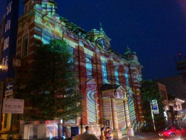 イベント参加報告 2014/08/25 高岡山町筋土蔵造りフェスタに行ってきました(8/24) 8月23日(土)・24日(日)、重要伝統的建造物群保存地区に選ばれている山町筋にて、高岡山町筋土蔵造りフェスタが開催されました。8月24日(日)、見に行ってきました。このイベントの一番の見どころは、土蔵造りの家屋や赤レンガの銀行に映し出された、「デジタル掛け軸」です。デジタル掛け軸・赤レンガの銀行。デジタル掛け軸・赤レンガの銀行その2。デジタル掛け軸・筏井家住宅。デジタル掛け軸・菅野家住宅。とてもきれいでした!また、写真は撮り忘れてしまいましたが、歩行者天国の路上でクラシックカーギャラリーも開催されていました。初めて行きましたが、とても素敵なイベントだったと思います。また来年、多くの皆様に足を運んでいただけたらなと思います。 http://kirittotakaoka.ria10.com/houkoku/201408252100高岡山町筋土蔵造りフェスタに行ってきました(8/24)