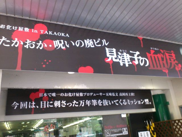 イベント参加報告 2014/07/29 御旅屋通りで開催中「見津子の血涙」(~8/31)、一人で挑戦!! 昨日、7月28日(月)の写真です。高岡七夕まつりは、いよいよ今週金曜から。もっといい写真を撮れれば良かったですが、高岡の街は既に七夕で彩られています。また、末広通りにはドラえもんの七夕飾りがありました。ドラえもんの作者である藤子・F・不二雄さんは、高岡の出身。しかし、藤子・F・不二雄ミュージアムが高岡にできなかったのは残念ですな・・・。先日も紹介しました、高岡大和6F「マハロ」のパンケーキ。今回はレギュラーパンケーキ(750円)を頼み・・・。そんな高岡の街中を彷徨っていた昨日・・・。ついに挑みました。お化け屋敷 in TAKAOKAたかおか・呪いの廃ビル「見津子の血涙」昨年、御旅屋通りの別の場所で、日本で唯一のお化け屋敷プロデューサー・五味弘文氏によるプロデュースの「足首屋敷」が開催されました。今年の夏は、呪いの廃ビル「見津子の血涙」として、また御旅屋通りに再上陸したのであります。今回の「見津子の血涙」は7月12日(土)から8月31日(日)までの開催。昨年の「足首屋敷」は、帰省期間が短かったため結局足を運べず。行ったところでめっちゃ行列ができていてどうしようもなかったですし・・・。今年は絶対行ってやろうと思いまして、比較的空いているであろう平日の昼、昼の部オープン時刻である13時の直後に、一人で挑戦しました。一人で挑戦しました。一人で挑戦しました。しかしそれでも結構並んでいました。やはり大人気ですね。小学生くらいのお子様のグループが中心でしたが、たまに20代や30代のカップル、男子高校生グループなども見受けられました。私が並んでいた時に、お一人様は多分私だけだったと思います。お一人様は多分私だけだったと思います。ちなみに、私の前に並んでいたのは同年代(20歳前後)のカップルでした。目の前はカップルでした。そのためか、すぐ後ろに並んでいた小学生くらいのグループから、そのカップルと私が「三人組」に見えたというような会話が聞こえ・・・。2人と1人が別グループだと判明した時には、「え?一人組?え???」という声も聞こえてきたのであります。「え?一人組?え???」お化け屋敷会場である「奥」からは、悲鳴がいっぱい聞こえてきます。これはやべえな、と・・・。ビビっているうちに、私の番が来ました。「見津子の血涙」は、「目に刺さった万年筆を抜いてくるミッション型」です。「目に刺さった万年筆を抜いてくるミッション型」です。うおおおこえええええ※あとはネタバレになるので書きません。無事万年筆を抜き終え、出口を出たところで、入口手前で躊躇するカップルがいました。係員さんが説得しているのですが、「大丈夫ですよ!さっきお一人で行かれた方もいらっしゃいましたよ!!」と。「大丈夫ですよ!さっきお一人で行かれた方もいらっしゃいましたよ!!」と。私の目の前で発言していましたwww結局そのカップルは入場を断念。私が見る限り、拒絶したのは男性の方だったような気がします。まあ、怖くなりますよ。あんなすさまじい悲鳴が聞こえてきたら・・・(笑)とはいえ、私は一人で挑戦したのですから、仲間がいるなら余裕だと思います!!笑彼女のいる方は、改めて「男」を見せつけるチャンスですよ!!8月いっぱいまで開催されていますので、ぜひ多くの方に挑んでいただきたいなと思います。見津子の血涙詳細(特設サイト・外部リンク)~開催概要~開催期間2014年7月12日(土)~ 8月31日(日)開催時間[平日]13:00 ~ 16:00 17:00 ~ 20:00[土・日・祝・お盆(8/14・15)]12:00 ~ 20:00※全日最終入場 19:30(営業時間内でも入場を終了する場合がございます)会場御旅屋通り商店街 特設会場料金[当日]900円お問い合わせ北日本新聞高岡支社営業部TEL. 0766-22-2224(受付:平日9:00~17:00)主催御旅屋賑わい創出実行委員会共催北日本新聞社企画・演出五味弘文(オフィスバーン)備考※6歳未満の方の入場はご遠慮ください。※18歳未満の方は19:00以降の保護者同伴をお願いいたします。※会場内での飲食、ビデオ、写真撮影、携帯電話の使用は基本的にご遠慮ください。 ※展示物にはお手を触れないようにお願いいたします。ちなみに高校の学校祭でお化け屋敷を「やる側」を経験しておりますので、そちら側の苦労も僅かながら分かります(笑)ルール・マナーを守って楽しみましょう!! http://kirittotakaoka.ria10.com/houkoku/201407291315御旅屋通りで開催中「見津子の血涙」(~8/31)、一人で挑戦!!