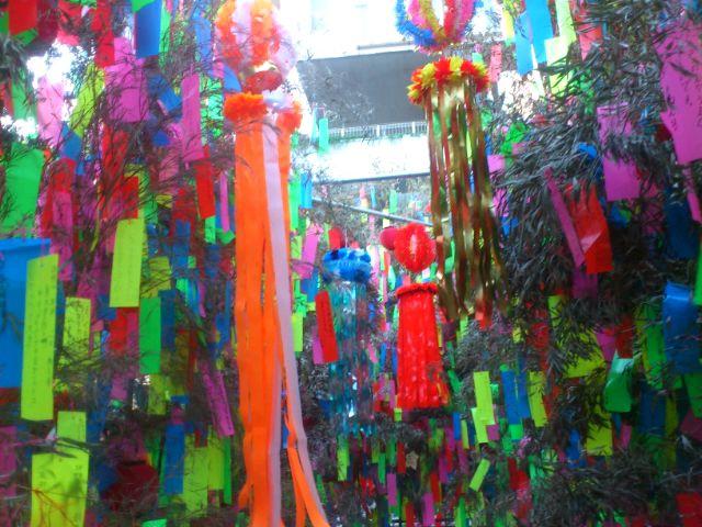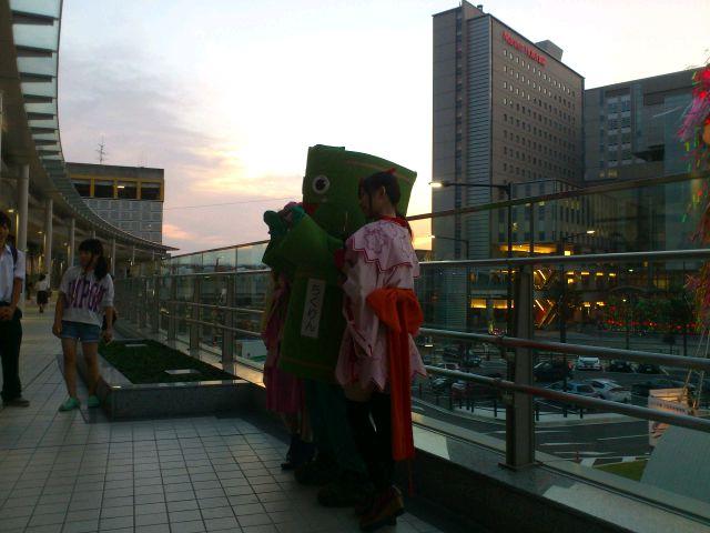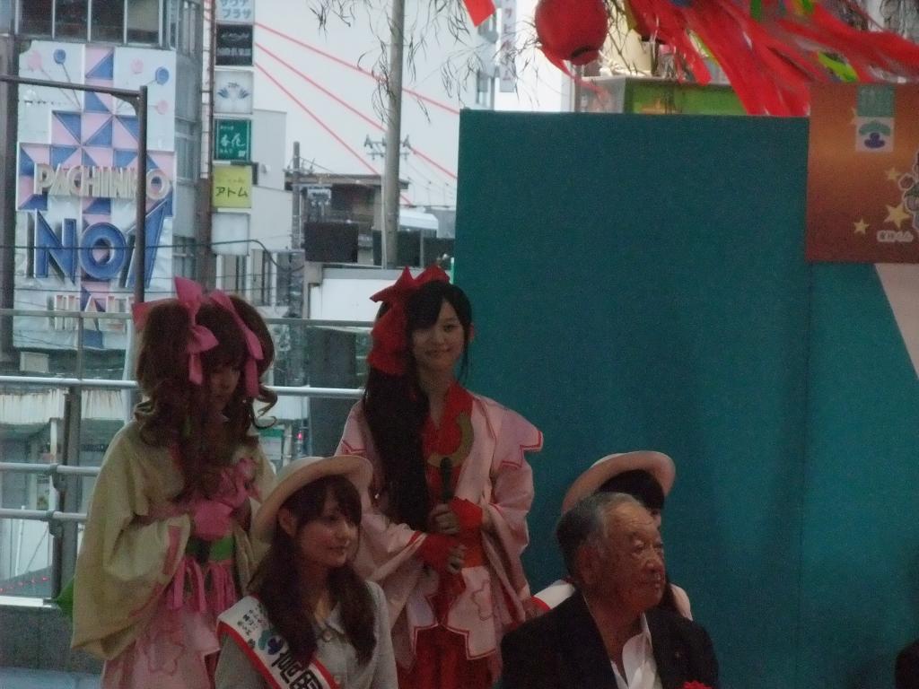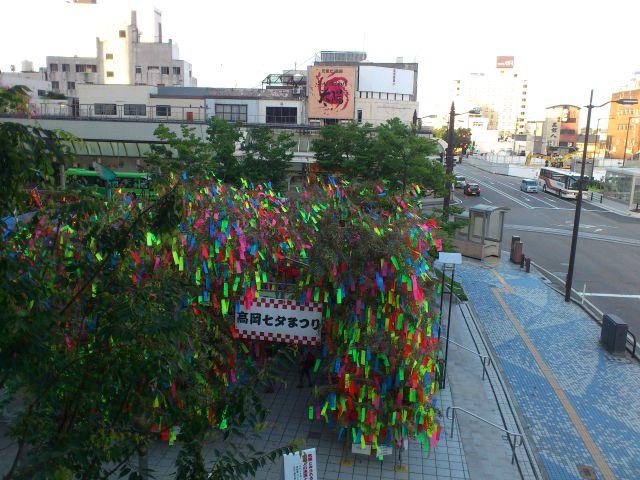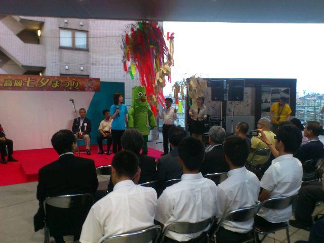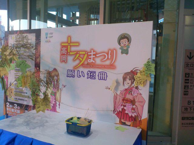 観光・イベント情報 2014/08/02 高岡七夕まつり開幕(8/1~8/7) 当ブログでもお伝えしています通り、8月1日(金)に高岡七夕まつりが開幕いたしました。高岡駅南北自由通路「万葉ロード」も、彩られています。今年は、高岡駅ステーションビル「クルン高岡」がオープン。それを記念し、駅前には6年ぶりにジャンボ七夕が飾られています。クルン高岡人工デッキから見た、末広通りの七夕飾り。この眺めは、今年が初めてだと思います。高岡駅前、ウイングウイング高岡前広場にも、たくさんの七夕。ウイングウイング高岡前広場の七夕の「中」。もはやトンネルです。さて、まず最初に、ダンスイベント「ダンス!ダンス!!ダンス!!!」が開催されている御旅屋セリオ(高岡大和)横の広場「@パーク」へ。高校のダンス部や一般の団体など、プロアマ問わず様々なチームが出演していましたが、私が着いた時に出演していたのは、射水のご当地アイドル「IMZ(アイムゼット)」の皆さんでした。IMZ出演のことは知らなかったので、驚きました。写真は、AKB48の「恋するフォーチュンクッキー」を踊っているところ。そして、本来の18時より5分以上早まりましたが、高岡市観光大使「あみたん娘」のPRが始まりました。左・セシル(遠さん)右・カノン(ご当地アイドル「ビエノロッシ」でも活躍する空野青空さん)お二人が、あみたん娘の活動等について、紹介しました。カノン「鳳凰啼けり」セシル「彼の高き岡に」カノン「あみたん娘、カノン」セシル「同じく、セシル」カノン「慈悲の力で」セシル「知恵の光で」二人「弥陀の本願、貫きます!」の決めゼリフ、決めポーズを最後に披露。結局、開始が早まったことによって、本来始まる予定の18時までに終わってしまいましたとさ(笑)再び末広通りを歩き、高岡駅へ移動。ちょうど、万葉線「ドラえもんトラム」が高岡駅に入りました。以前にも紹介しました、ドラえもんポストとのショットを再び。クルン高岡2F、「願い短冊」。あみたん娘デザインです。18時半より、クルン高岡にて高岡七夕まつりオープニングイベントが開催。市長さんたちの挨拶の後、様々なキャラクターが登場。まず、これは私も初めて知りました、中越パルプのキャラクター「ちくりん」。続いて、お馴染み、高岡市公式マスコットキャラクター「利長くん」(左)と「家持くん」(右)。そして、30分前まで大和横に出演したばかりの、「あみたん娘」。あみたん娘のアップ。カノンがカメラ目線をくれましたが(偶然だと思いますが)、画質が悪いのが残念・・・。ちなみに、あみたん娘の手前にいる帽子の女性お二方は、高岡万葉大使の方です。関係者の皆様、そして各キャラクターの皆様により、七夕点灯のスイッチが押されました。(ちくりん、利長くん、家持くんは写真左側にいますが、隠れてしまいました)こうして、高岡の七夕に今年もあかりが灯りました。オープニングイベント終了後、予定外でしたがあみたん娘の撮影会が行われていました。あみたん娘の撮影会に、通りかかった「ちくりん」も参戦。19時すぎ、再び「ダンス!ダンス!!ダンス!!!」の会場に戻ると、ご当地アイドル「ピコピコ☆レボリューション」のご本人たちによる物販が行われていました。18時20分頃から、ピコピコ☆レボリューションのステージが行われていたそうです。ちなみに、19時から母校高岡第一高校ダンス部が出演されていたそうですが、クルン高岡でゆっくりしていたらそのことをすっかり忘れてしまい・・・。着いた頃にはもう終わっていました・・・。2年続けて見ることができなくて、残念。。。一高祭行こうかなwさて、一人寂しく夕食。ウイングウイング高岡2Fにある「BON」にて、この会員証呈示によって受けられる特典サービスを(ドリンク1杯無料)。 そして、同じく「BON」でシロエビのピザをいただきました。それにしても、何でこんなおしゃれなお店で一人寂しくご飯食べてるんだろう。一人寂しく夕食をとった後、駅地下へ。あみたん娘が描かれた「願い短冊」コーナー、駅地下街にもありました。 駅地下街では、獅子舞集団「舞獅道」の練習が行われていました。ケーブルテレビ番組や映画制作で獅子舞の価値が再認識されつつある中、富山県伝統の獅子舞をベースにエンターテイメント性を高めた獅子舞を創作演舞することを目指す、注目の団体です。今回は天狗の練習をされていました。ちなみに、駅地下街では高岡出身のシンガーソングライター・simakoさんの曲がずっと流れていました。simakoさんは、クルン高岡の応援ソングを制作されたそうで、3日(日)の七夕まつりに合わせた地下街のイベントで披露されるそうです。クルン高岡に応援ソング 3日の七夕まつりで初披露(富山新聞 8月1日)というわけで、七夕以外のものも紹介いたしましたが、今年もいよいよ高岡七夕まつりが始まりました。高岡七夕まつりは7日(木)まで続き、様々なイベントが行われます。また、今日明日の土日は末広通りが歩行者天国になり