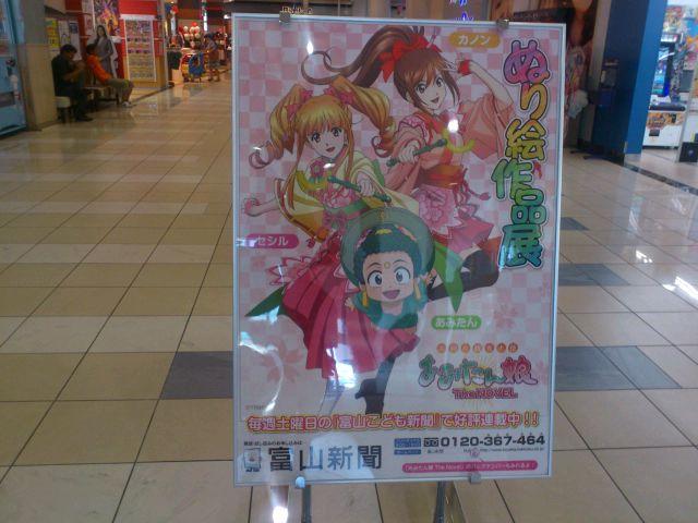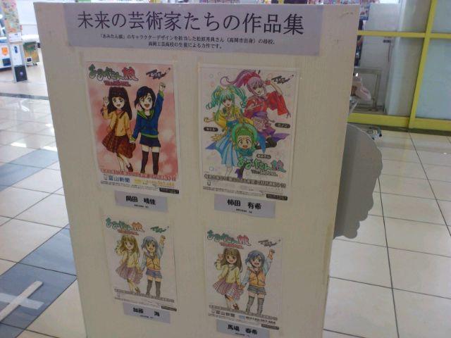 イベント参加報告 2014/08/03 高岡市観光大使あみたん娘ぬりえ展がイオンモール高岡にて開催中(8/2~10) 8月2日(土)午後、イオンモール高岡に足を運びました。着いた時、イオンモール高岡バス停に停車していた、正直なバスです。8月2日(土)、イオンモール高岡にて、「高岡市観光大使あみたん娘ぬりえ展」が始まりました。このぬりえ展は、富山新聞の「富山こども新聞」(毎週土曜日)で連載中の小説「あみたん娘 The NOVEL」をテーマにしたもので、今年5月に続き今回が二度目の開催となります。県内各地の園児・児童たちから前回の3倍以上となる約310点の作品が集まり、1階専門店街北入口通路(トイザらス前)と同南入口通路(ライトオン前)の2ヶ所に、8月10日(日)まで展示されます。(富山新聞の記事より)ぬりえ展会場には、あみたん(進化前)、阿弥貴(進化後)、かのん(進化前)、カノン(進化後)、せしる(進化前)、セシル(進化後)の各キャラクターのパネルも飾られています。写真は、カノン(進化後)のものです。トイザらス前会場。このような感じで、様々なあみたん娘が展示されております。左側のパネルは、阿弥貴(進化後)です。また、園児・児童の他にも、あみたん娘をデザインしたアニメーター松原秀典さんの母校・高岡工芸高校の生徒による作品も展示されております。そして、初日の8月2日(土)13時~17時、あみたん娘の公式コスプレイヤーさんが来場。左・セシル(遠さん)右・カノン(泉野直子さん)イオンモール高岡を訪れるお客様にぬりえ展のPRを行った他、このように写真撮影にも積極的に応じてくださいました。公式コスプレイヤーさんの来場は初日のみですが、ぬりえ展は先程お伝えした通り8月10日(日)まで開催されておりますので、ぜひ足をお運びになって、個性あふれる作品をご覧になってください。お待ちしております。さて、あとはぬりえ展とは関係のない話。開催中の七夕まつりでもドラえもんの七夕飾り(文苑堂書店)が話題となっておりますが、イオンモール1Fにも、ドラえもんがいるので探してみてください。そして・・・。2Fゲームセンターのクレーンゲームにて、Eテレの子ども向け番組「いないいないばぁ!」のキャラクター「ワンワン」のストラップを、ある方にとっていただきました。22歳独身男性ながら、Eテレでも特に対象年齢の低い番組のこのキャラクターが大好きなのであります。「いないいないばぁ!」もそうですが、BSプレミアムで放送されている「ワンワンパッコロ!キャラともワールド」という番組でのワンワンは本当にすごいので、ぜひ見て欲しいなと思います。それにしても、私の中の「イケメン」の定義に、「クレーンゲームのうまい人」というのが加わった瞬間でした。しかも私が何度やってもとれなかったのを、一発でとってくださいましたから・・・。イケメンに程遠い人間ですが、イケメンになりたいなと思いました。どなたかはここでは書きませんがとってくださった方、本当にありがとうございました!さて、ワンワンの話でだいぶアツくなってしまいましたが・・・。8月1日2日と色々動きまわりました(笑)今日3日は、駅地下街にて高岡出身のシンガーソングライターsimakoさんらが出演するステージがあるそうなので、行きたいです。ただ、ここ2日間の疲労で今日は寝込んでいるかもしれません(笑) http://kirittotakaoka.ria10.com/houkoku/201408031230高岡市観光大使あみたん娘ぬりえ展がイオンモール高岡にて開催中(8/2~10)