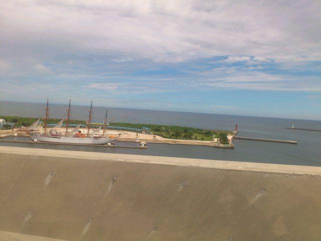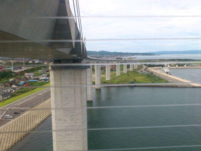 管理人のつぶやきその他 2014/08/08 脈絡のない旅 砺波市で迎えた朝・新湊大橋「あいの風プロムナード」(8/3) 8月2日(土)、イオンモールのあみたん娘ぬりえ展を見た後、友人と飲んで夜には帰宅しましたが、何故か眠れず・・・。結局一睡もしないまま、8月3日(日)早朝、高岡駅前へ。早朝の高岡七夕を見るのはさすがに初めてでした。そして、そのまま砺波市へ。砺波市にできるイオン建設現場。北陸一になるとか・・・。そして、個人的にお気に入りの写真。砺波市の祖母の家から撮った、幻想的(?)な朝の風景。立山連峰も奥に見えました。更に、まだ7時になるかどうかというくらいの時間に、河川マニア炸裂。祖父川の指定区間終点へ。砺波市三郎丸、JR油田駅から北に約200m、城端線のすぐ東側にあります。この看板を撮るのはなかなか大変でした。時間的に逆光だったし・・・。祖父川は指定区間終点からすぐに、城端線の下を流れます。その後、千代交差点付近で国道156号線を通り、戸出、本保、西高岡駅付近、北島などを経由し、国條橋すぎの岩坪地内で小矢部川と合流します。同日昼、新湊方面へ。今年3月に供用開始した、牧野大橋。新たなる立山眺望スポットだと思います。曇っていましたが、立山連峰がくっきり見えました。続いて、富山新港に架かる日本海側最大の斜張橋「新湊大橋」へ。新湊大橋から見た、新湊の名所・海王丸。新湊大橋から見た立山連峰も、素敵です。新湊大橋東詰側から、新湊大橋を眺めます。さて、写真右側にあるのはエレベーター。なんと、この新湊大橋は、自動車専用道の下に、歩行者・自転車専用道があり歩いて渡ることができるのです。その歩行者・自転車専用道は、「あいの風プロムナード」と言います。エレベーターで上まで行きました。堀岡から、越ノ潟へと向かう県営フェリーが見えました。あいの風プロムナード。こんな感じの通路です。あいの風プロムナードより、富山新港側を眺めます。夜景はきっと綺麗だろうな。でも20時までなんですよね・・・。(期間限定で21時までの時も)あいの風プロムナードより、富山湾側を眺めます。あいの風プロムナードから眺める、海王丸。あいの風プロムナード西側エレベーターより、新湊大橋西詰側を眺めます。このような大きな橋を歩いて渡れる・・・。いい経験をさせていただきました(笑)ちなみに両側エレベーター近くには駐車場も用意されています。もちろん、自転車も通れますので(ただし橋の中では乗車禁止)、通学等にも利用できます。新湊の新たなる見どころだと思うので、ぜひ利用してみてください。 http://kirittotakaoka.ria10.com/kanrinin/201408081645脈絡のない旅 砺波市で迎えた朝・新湊大橋「あいの風プロムナード」(8/3)