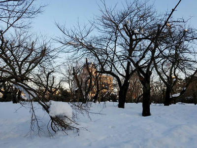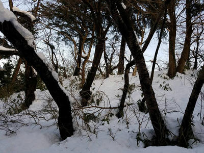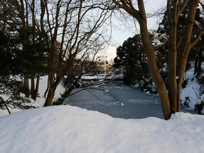 高岡の将来を考える・・・ 2018/02/11 高岡古城公園の雪害状況「非常事態」 その2 2018年の豪雪。まず、1月11日(木)から12日(金)にかけて、豪雪が北陸地方を襲い、高岡で80cm以上の積雪。そして、先日2月5日(月)から6日(火)にかけて、再び同じレベルの豪雪。先月の豪雪の後、高岡古城公園(国指定史跡・高岡城跡)の雪害状況を、当ブログでも取り上げました。(参考:高岡古城公園の雪害状況「非常事態」)当時の報道では、少なくとも桜の木など30本以上が倒木し、240本以上で15cm以上の太さの枝折れが生じたとのことでした。おそらく復旧もままならない状態だったと思います。そんな中で、今回の豪雪・・・。今回の豪雪の後、2月9日(金)に、再び状況を確認しに行きました。やはり多くの枝折れが見られました。先月の豪雪で折れたのか、今回の豪雪で折れたのか、素人では判別はつきませんが・・・。しかし、先月の豪雪で折れたと思われる部分については、応急措置として枝そのものが切られていたので、恐らく枝折れが見られたのは今回新たに折れたものが多いと思われます。つまり、被害は拡大しています。北口駐車場から、雪が積もる階段を登って小竹藪へ。その最中、小竹藪側の斜面を撮影。雪害と思われる枝折れがありました。小竹藪その①コシノヒガン、タカオカコシノヒガンなどの桜が多く生息する箇所。枝折れがあります。小竹藪その②小竹藪その③幹ごとやられている木が・・・。小竹藪その④三の丸(市民体育館)から、本丸・朝陽橋方面を眺める手前の木(見にくいですが、写真左側)が枝折れしています。搦手口周辺奥に見えるのは、先月の豪雪で倒木し、法面が崩れた地点。倒木はそのままになっています。明丸(動物園)から、本丸を眺める本丸の斜面に「古城の滝」がある場所。その周辺の木が、倒木や枝折れしています。二の丸(市民体育館)に生える、大ケヤキ。樹齢400年以上と言われる大木にも、枝折れが見られました。二の丸(左)と本丸(右)を結ぶ土橋から、池ノ端方面を眺める本丸側の斜面の木、倒木しています。先月見た時と変わっていません。本丸入口から池ノ端、朝陽橋付近に至る通路(いわゆる「犬走り」)は、依然として通行禁止状態です。本丸から朝陽橋方面へと階段を下る最中、枝のもとから完全に折れてしまっている木を発見しました。朝陽橋から、中の島方面を眺める写真左側の木が、枝折れしています。朝陽橋から、三の丸方面を眺める斜面に生える木が倒木しています。ちなみに、朝陽橋はこんな状況。通行可能だったので通りましたが、橋の前後に階段があるので危ないし、橋自体この状況なので非常に危険です。通っていて、何度も心臓が止まりそうになりました。通行禁止すべきレベルです。さて、先日の報道では、復旧工事は早くて6月以降の着手になる見通しとのことで・・・。少なくとも、4月の桜まつりには全く間に合いません(高岡古城公園は、「さくら名所100選」です)。また、10月の万葉まつりにも間に合わない見通しとなっています。高岡古城公園、「非常事態」です。 http://kirittotakaoka.ria10.com/_blog/201802110000高岡古城公園の雪害状況「非常事態」 その2