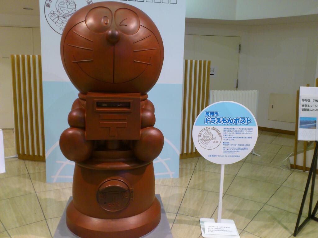 ドラえもんのまち高岡 2014/06/15 高岡駅「ドラえもんポスト」の設置場所が変わりました 高岡駅クルン高岡1F、万葉線ホーム前待合室に「ドラえもんポスト」が設置されておりましたが、その設置場所が変わりました。 (6月14日撮影)以前は北口広場側に設置されておりましたが、先日、万葉線ホーム側のこの場所に変わりました。この移動により、ドラえもんポストと、万葉線電車を同時にカメラに収めることができるようになりました。私が撮影した時は残念ながらドラえもんトラムでもアイトラムでも猫電車でもありませんでしたが・・・(笑)今度はぜひ、ドラえもんポスト・ドラえもんトラムのショットを撮ってみたいものです!また、ドラえもんポストはもちろん、投函できますので(ドラえもんの消印がつきます)、ぜひご利用になってください。 http://kirittotakaoka.ria10.com/doraemon/201406151430高岡駅「ドラえもんポスト」の設置場所が変わりました
