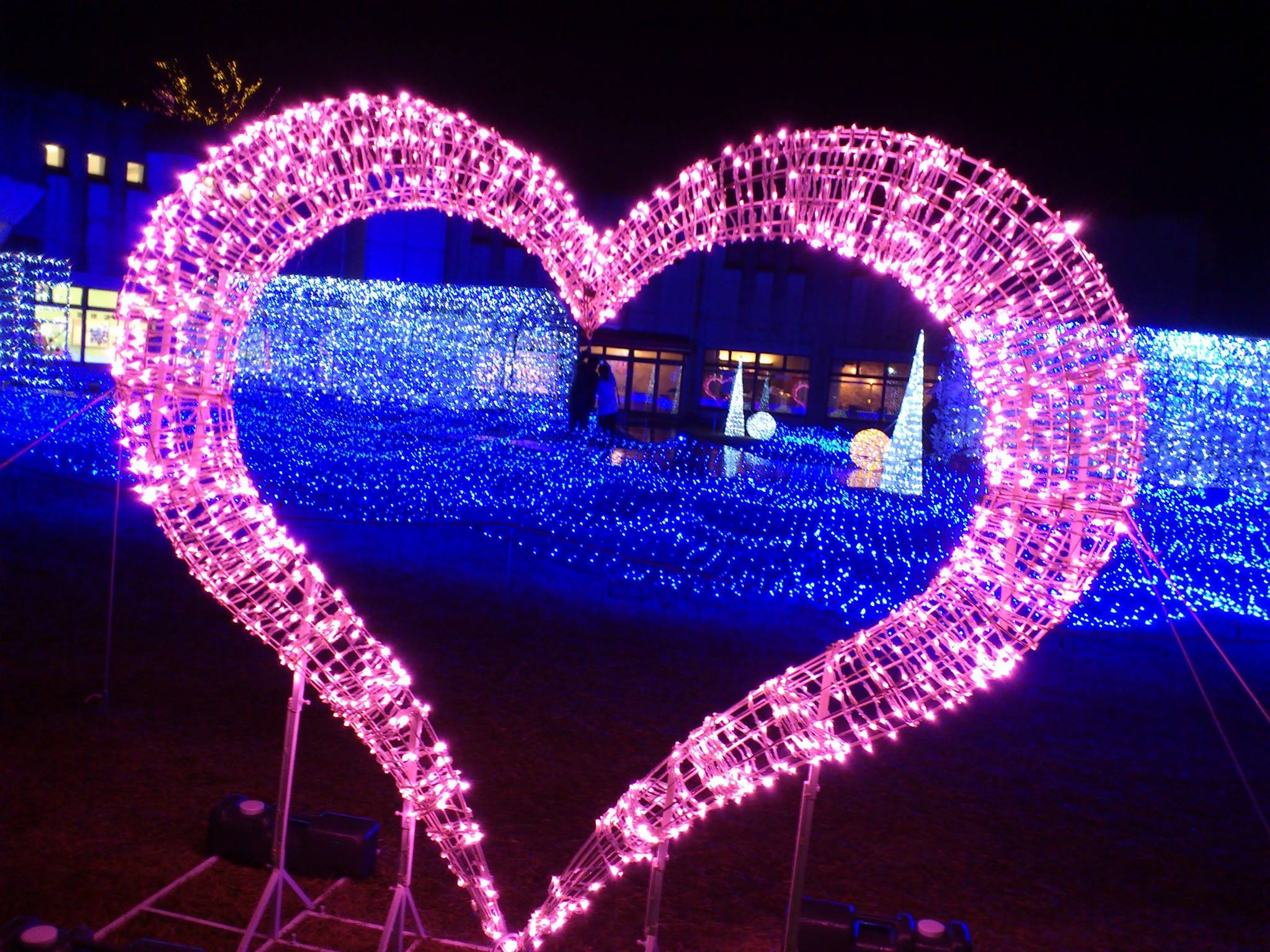 「恋人の聖地」としても有名なクロスランドおやべでの、冬のイルミネーション。