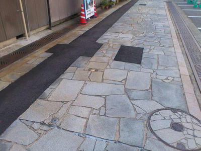 金屋町名物の石畳、下水道工事により現在一部分でこんな状態になっています。