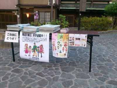 あみたん娘のリーフレット並びに、オリジナル小説連載中の富山新聞と読売新聞の配布が行われておりました。