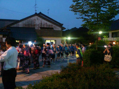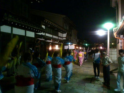 金屋町の石畳通りには、弥栄節踊りの踊り手の皆様が延々と・・・。