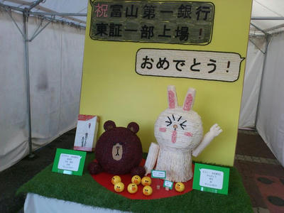 イベント参加報告 2016/09/28 【イベント参加報告】福岡町つくりもんまつり 全36作品紹介(21)~(30) 【イベント参加報告】福岡町つくりもんまつり 全36作品紹介(1)~(10)【イベント参加報告】福岡町つくりもんまつり 全36作品紹介(11)~(20)(21)コイ谷(次勝作品)製作者:中島町青年会展示場所:浅地隆弘邸前とても印象深い作品で、私が見に行った時にも多くの方が足を止めていました。線路には、つくりもんのプラレールが走っていました。(22)Let'sコミュニケーション!LINE人気キャラクターブラウン&コニー製作者:富山第一銀行福岡支店展示場所:富山第一銀行福岡支店(23)われは海の子製作者:福岡地区婦人会展示場所:倉農機具製作所(24)こい製作者:福岡町衣料組合展示場所:大矢服装(25)新栄町 歌舞伎公演(優勝作品)製作者:新栄町自治会展示場所:仁寿酒販倉庫入口からつくりもんで作られている雄大な作品。見事な優勝作品でした。(26)世界に1つだけの花製作者:中町自治会展示場所:中町仮設テントSMAPの名曲「世界に1つだけの花」のCDジャケットです。(27)GODZILLA製作者:中町自治会展示場所:中町仮設テント(28)スーパーマリオとゆかいな仲間たち製作者:大蔵町自治会展示場所:松山旧宅(29)大蔵町記憶遺産製作者:大蔵町自治会展示場所:旧営団跡「姫本健三宅横」(30)利長君とくまモン製作者:高岡市立福岡公民館展示場所:福岡公民館玄関アーチ下 PR http://kirittotakaoka.ria10.com/houkoku/201609281900【イベント参加報告】福岡町つくりもんまつり 全36作品紹介(21)~(30)