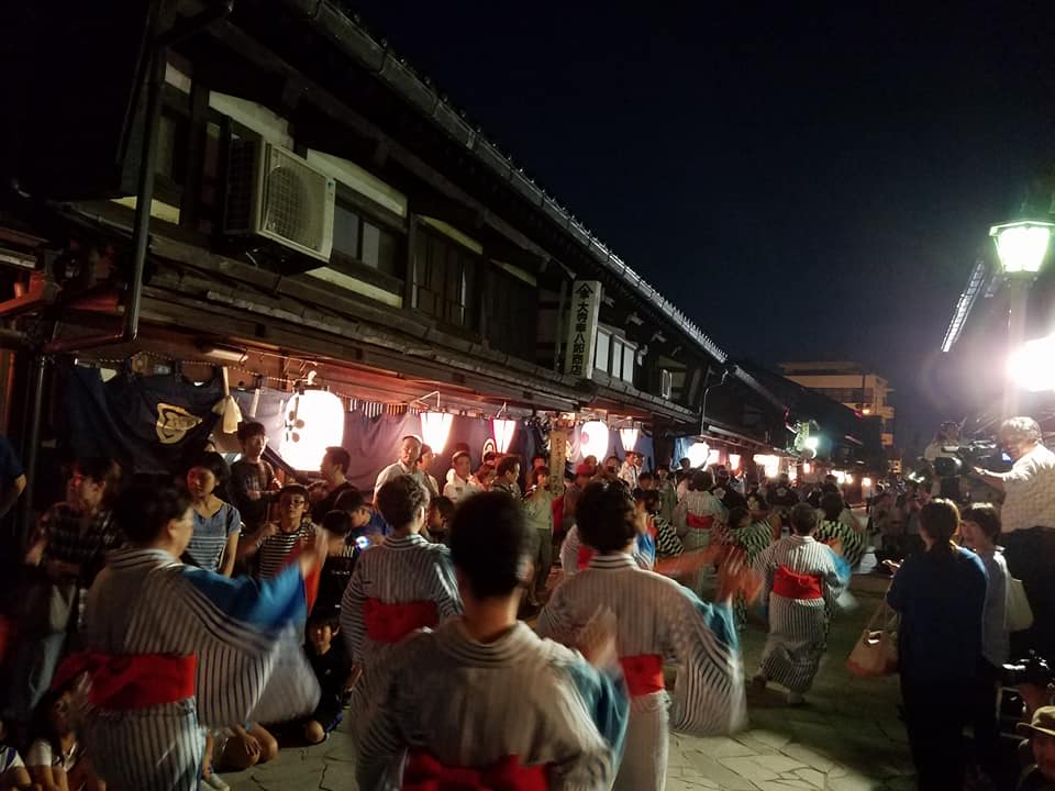 特に、19日(火)夜の前夜祭踊りでは、約1,000人による金屋町の石畳通りの街流しが名物となっております。
