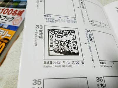 観光・イベント情報 2018/02/21 日本100名城 スタンプ帳を購入 ★詳しい情報はこちら★日本100名城ガイド(外部リンク)昨日、高岡古城公園(国指定史跡・高岡城跡)へ。鍛冶丸にある高岡市立博物館にて、ついに「日本100名城」のガイドブックと、スタンプ帳を購入してしまいました(笑)古城公園を訪れる観光客の中には、スタンプ集めをされている方も多く、感化されてしまった次第です(笑)2006年に、財団法人日本城郭協会が選んだ「日本100名城」。高岡城は、富山県で唯一選ばれております。高岡城スタンプは、高岡市立博物館で押すことができます。私も、早速博物館で押印。全制覇は、一体何十年かかるだろう・・・。頑張ります!!日本100名城一覧~北海道・東北地方~001.根室半島チャシ群跡(北海道根室市)002.五稜郭(北海道函館市)003.松前城(北海道松前郡松前町)004.弘前城(青森県弘前市)005.根城(青森県八戸市)006.盛岡城(岩手県盛岡市)007.多賀城(宮城県多賀城市)008.仙台城(宮城県仙台市青葉区)009.久保田城(秋田県秋田市)010.山形城(山形県山形市)011.二本松城(福島県二本松市)012.会津若松城(福島県会津若松市)013.白河小峰城(福島県白河市)~関東・甲信越地方~014.水戸城(茨城県水戸市)015.足利氏館(栃木県足利市)016.箕輪城(群馬県高崎市)017.金山城(群馬県太田市)018.鉢形城(埼玉県大里郡寄居町)019.川越城(埼玉県川越市)020.佐倉城(千葉県佐倉市)021.江戸城(東京都千代田区)022.八王子城(東京都八王子市)023.小田原城(神奈川県小田原市)024.武田氏館(山梨県甲府市)025.甲府城(山梨県甲府市)026.松代城(長野県長野市)027.上田城(長野県上田市)028.小諸城(長野県小諸市)029.松本城(長野県松本市)030.高遠城(長野県伊那市)031.新発田城(新潟県新発田市)032.春日山城(新潟県上越市)~北陸・東海地方~033.高岡城(富山県高岡市)034.七尾城(石川県七尾市)035.金沢城(石川県金沢市)036.丸岡城(福井県坂井市)037.一乗谷城(福井県福井市)038.岩村城(岐阜県恵那市)039.岐阜城(岐阜県岐阜市)040.山中城(静岡県三島市)041.駿府城(静岡県静岡市葵区)042.掛川城(静岡県掛川市)043.犬山城(愛知県犬山市)044.名古屋城(愛知県名古屋市中区)045.岡崎城(愛知県岡崎市)046.長篠城(愛知県新城市)047.伊賀上野城(三重県伊賀市)048.松阪城(三重県松阪市)~近畿地方~049.小谷城(滋賀県長浜市)050.彦根城(滋賀県彦根市)051.安土城(滋賀県近江八幡市)052.観音寺城(滋賀県近江八幡市)053.二条城(京都府京都市中京区)054.大阪城(大阪府大阪市中央区)055.千早城(大阪府南河内郡千早赤阪村)056.竹田城(兵庫県朝来市)057.篠山城(兵庫県篠山市)058.明石城(兵庫県明石市)059.姫路城(兵庫県姫路城)060.赤穂城(兵庫県赤穂市)061.高取城(奈良県高市郡高取町)062.和歌山城(和歌山県和歌山市)~中国・四国地方~063.鳥取城(鳥取県鳥取市)064.松江城(島根県松江市)065.月山富田城(島根県安来市)066.津和野城(島根県鹿足郡津和野町)067.津山城(岡山県津山市)068.備中松山城(岡山県高梁市)069.鬼ノ城(岡山県総社市)070.岡山城(岡山県岡山市北区)071.福山城(広島県福山市)072.郡山城(広島県安芸高田市)073.広島城(広島県広島市中区)074.岩国城(山口県岩国市)075.萩城(山口県萩市)076.徳島城(徳島県徳島市)077.高松城(香川県高松市)078.丸亀城(香川県丸亀市)079.今治城(愛媛県今治城)080.湯築城(愛媛県松山市)081.松山城(愛媛県松山市)082.大洲城(愛媛県大洲市)083.宇和島城(愛媛県宇和島市)084.高知城(高知県高知市)~九州・沖縄地方~085.福岡城(福岡県福岡市中央区)086.大野城(福岡県糟屋郡宇美町)087.名護屋城(佐賀県唐津市)088.吉野ケ里遺跡(佐賀県神埼郡吉野ケ里町)089.佐賀城(佐賀県佐賀市)090.平戸城(長崎県平戸市)091.島原城(長崎県島原市)092.熊本城(熊本県熊本市中央区)093.人吉城(熊本県人吉市)094.大分府内城(大分県大分市)095.岡城(大分県竹田市)096.飫肥城(宮崎県日南市)097.鹿児島城(鹿児島県鹿児島市)098.今帰仁城(沖縄県国頭郡今帰仁村)099.中城城(沖縄県中頭郡中城村)100.首里城(沖縄県那覇市) http://kirittotakaoka.ria10.com/kankou/201802212200日本100名城 スタンプ帳を購入
