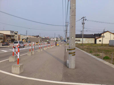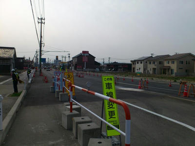 小矢部市野端(石動駅から200mちょっと)。左側がコメリ。ここまで通行止め。