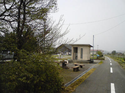 薮波駅跡は、自転車道の「薮波サービスエリア」として公園風に整備されています。