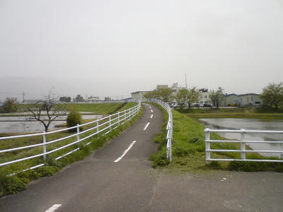 国道359号線で小矢部川を渡った後、津沢小学校前で自転車道は国道を離脱。