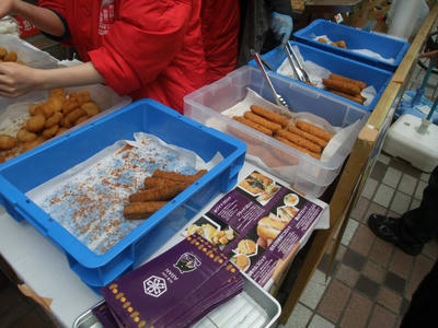 高岡コロッケ 2014/03/05 高岡市物産展@武蔵小山商店街で、高岡コロッケを買ってきた 3月1日・2日、品川区の武蔵小山商店街にて、高岡市物産展が開催されました。2日午後、私も足を運びました。旅のお供、荻布寮の欅の妖精おぎたん。 アーケードにかけられた、「第1回全国コロッケフェスティバル初代チャンピオン ブラックコロッケ ホワイトコロッケ」の垂れ幕。物産展会場。表の様子。物産展会場、中に入ったところ。さあ、高岡へ。旅は続く、能登へ、飛騨へ。物産展会場、中の様子。こちらでは、ますのすし、シロエビのから揚げなどが販売されていました。揚げたてのシロエビから揚げが試食できました。中の更に奥。こちらでは、グリーンラーメン、地酒、この3月2日にパズドラとコラボした氷見うどんなどなど。高岡の観光情報の展示もありました。表に戻り。店頭では、高岡コロッケの販売。さすが有名な武蔵小山商店街。人通りも多いため、店頭販売は盛況でした。次々と売られていくので、足してもすぐに空になっていく感じ(笑)とにかく盛況で慌ただしかったのでよく確認できませんでしたがブラックコロッケ(ブラックラーメンと同じ醤油ベース)ホワイトコロッケ(とろろ昆布を使用)高岡大仏コロッケ(普通のコロッケの約2.5倍)白えびかまぼこコロッケ富山牛コロッケの5種類が販売されていたと思います。ちなみにこの日、中学の同級生で現在女子寮生である人が、売り子として働いていました。ただ、慌ただしすぎてこれは喋れないなと思い、その人からブラックコロッケとホワイトコロッケ4個ずつ買ってすぐ帰りました(笑)そして、売り子の若い女性がもう一方いらっしゃったのを覚えていたのですが・・・。後で知ってびっくり。なんと、2014年あみたん娘カノン・公式コスプレイヤー東京エリアグランプリに選ばれた青木満理子さんだったのです。こんなに早く新しい公式コスプレイヤーの方をお目にかかれるとは思いもしませんでした。右の長いやつがブラックコロッケ。左の、ちょっと隠れてしまっているやつがホワイトコロッケ。ブラックコロッケ、マジでうまかった!!ブラックラーメン流行以降、富山県内で「ブラック」はじめ色ネタの商品がたくさん生み出され、中にはネタとしか思えないものも結構存在しますが、コロッケは大成功だと思います!!さすが日本一です。ホワイトコロッケももちろん、うまかったです。とろろ昆布だということは、後でパンフレットを読んで気がつきましたが(笑)というわけで、簡単すぎましたが高岡市物産展@武蔵小山商店街のレポートでした!! http://kirittotakaoka.ria10.com/korokke/201403050030高岡市物産展@武蔵小山商店街で、高岡コロッケを買ってきた