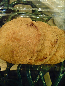 高岡コロッケ 2009/10/02 高岡コロッケ食べ尽くし②~④ No.4・19・20 御旅屋セリオ(高岡大和)地下 (前身ブログより) 今日の帰り道に行ったのは、再開発が行われて早15年となる御旅屋セリオ(高岡大和)。周辺は明日から行われるB級グルメ博などのイベントに向け、屋台が立っていました。気がつけば、御旅屋セリオに行くのも1年半ぶりになりますが、今回の目的は当然コロッケ。この建物の地下1階(いわゆるデパ地下)に、高岡コロッケ実行委員会加盟店が3つも存在するのです!というわけで、一気にその3店のコロッケを制覇してきました。コロッケマップNo.20 「大和高岡店・神戸コロッケ」所在地:高岡市御旅屋町101営業時間:10:00~19:00まずこのお店で購入した「じゃがいもコロッケ(夕方の割引により84円)」を食べました。グルメリポーターではないので味についてしっかり語ることはできませんが、一緒にこの企画に挑戦している同級生は「じゃがいもがしっかりしている」と言っていました。とは言え、彼が食べていたのは私とは違い「肉じゃがコロッケ」でしたが・・・(一口食べさせてもらいましたがこれも美味しい・・・)。コロッケマップNo.19 「大和高岡店・伊藤ハム」(所在地・営業時間は「神戸コロッケ」と同じ)次に、このお店で購入した「ビーフコロッケ(120円、夕方割引で100円・・・だったかな?)」。神戸コロッケはどちらかと言うと塩味の方でしたが、こちらは甘さが特徴。また違った美味しさがありました。コロッケマップNo.4 「POTTEO@POTEO おいも美人」 (所在地・営業時間は他の2店と同じ)最後はこのお店で購入した限定商品、「もんじゃ焼きコロッケ(420円、夕方割引で400円、1パック3個入り)」です!遅い時間だったためか、これ以外に「コロッケ」というものが見当たりませんでした。しかし、こういうレアなものを食べられるのもこの企画ならではですね。中身は当然もんじゃ焼き。正直な話もんじゃ焼きは食べたことがありませんでしたが、美味しかったです。なお、この3店はほぼ隣接した位置に存在します。したがって1店見つければ残りの2店もすぐに見つかるでしょう。それにしても、こういったデパートでコロッケを楽しむのもいいですね・・・。「御旅屋セリオ(高岡大和)」の地図(Yahoo!地図)明日は駅南地区にある3店を巡る予定です。それではまた・・・。(前身ブログより 2009年10月2日更新) http://kirittotakaoka.ria10.com/korokke/200910022049高岡コロッケ食べ尽くし②~④ No.4・19・20 御旅屋セリオ(高岡大和)地下 (前身ブログより)