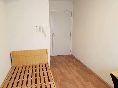 寮生室。ベッド、エアコン、机、クローゼットなどはもちろん、以前の寮にはなかったベランダも各個室に!