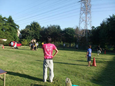 5人1チームで、ぐるぐるバット10回を行ってからコースを1往復し、次の走者にバトンタッチ。
