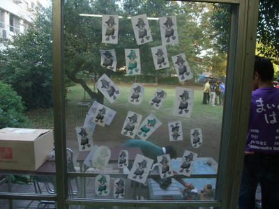 片付けの最中。会場のいたるところに貼られていた「おぎたん」が回収され、いったんここに集められました(笑)