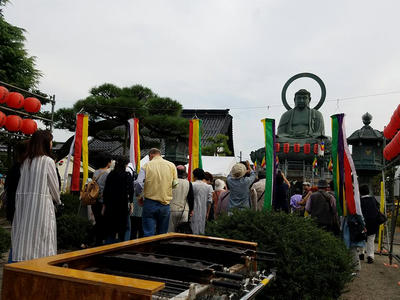 NPO法人 大佛三郎 2017/09/06 【イベント参加報告】大仏むすび縁日(8/27) 8月27日(日)夕方。高岡大仏前にて、「大仏むすび縁日」が開催されました。会場にはすれ違いが大変なくらい多くの人が集まり、みんなで夏の終わりの思い出を作りました。縁日では、今年も特定非営利活動法人大佛三郎の「大仏カステラ」ブースを出店。カステラ焼き体験ブースも含め、多くのお客様にご来店いただきました。そして、大仏前の道が歩行者天国に。まずは「ダンボールキャタピラー選手権大会」が開催されました。そして、メインイベントの「大仏盆踊り」。昨年復活した「大仏音頭」での輪踊り。今年は更に多くの方が集まり、踊りを楽しみました。歴史は浅いですが、市民に定着してきました。「夏の終わりの思い出作り」に、来年以降も多くの方に楽しんでいただけるイベントになればいいなと思います。 http://kirittotakaoka.ria10.com/saburou/201709061500【イベント参加報告】大仏むすび縁日(8/27)