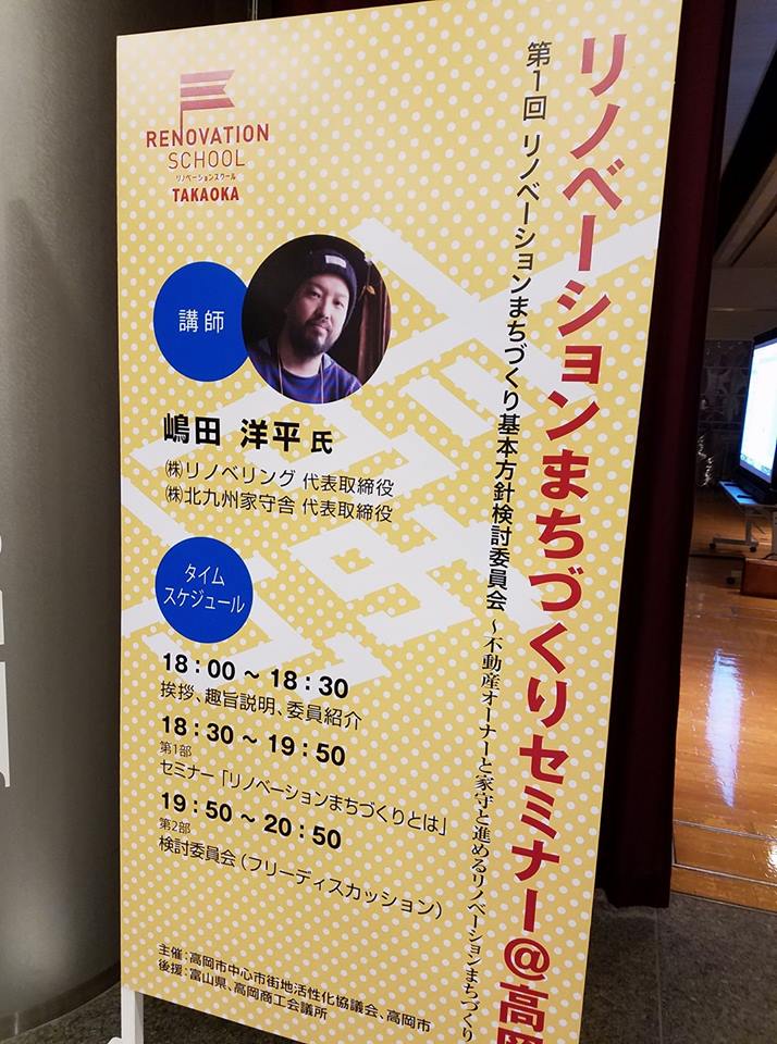 高岡市政情報 2017/10/18 【イベント参加報告】リノベーションまちづくりセミナー@高岡(10/10) ★詳しい情報はこちら★リノベーションスクール@高岡(外部リンク) 第1回リノベーションまちづくり基本方針検討委員会が開催されました。 (同上)10月10日(火)。ウイング・ウイング高岡にて、「リノベーションまちづくりセミナー@高岡」並び「第1回リノベーションまちづくり基本方針検討委員会」が開催されました。私も参加させていただきました!セミナーでは、㈱リノベリング代表取締役・㈱北九州家守舎代表取締役として、北九州市などで空き物件を活かしたまちづくりに取り組んでこられた嶋田洋平先生による講演が行われました。そして、委員会はフリーディスカッションとして、参加者による自由な意見交換が行われました。さて、12月には「リノベーションスクール@高岡」が開催されます。高岡でも、少子高齢化、人口減少、更には財政難など・・・様々な問題に直面しています。人口増加・経済成長時代に行われていた従来のまちづくり手法は、今の時代には適していません。多くの遊休物件を活かし、行政・・・補助金に頼らないまちづくり。民間主導で「リノベーションまちづくり」に取り組む事例も多数生まれてきたそうです。高岡でもそういった動きが起こるよう・・・私も一市民として、取り組んでいけたらなと思います。 PR http://kirittotakaoka.ria10.com/shisei/201710181900【イベント参加報告】リノベーションまちづくりセミナー@高岡(10/10)