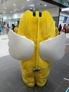 投票箱をモチーフにしており、頭には票を入れる穴。そして・・・。
