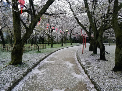 高岡観光ボランティアガイド「やまたちばな」 2018/04/08 【イベント参加報告】高岡桜まつり やまたちばなガイド(4/8)+4月7日の古城公園の桜 4月8日(日)。「高岡桜まつり」開催中の高岡古城公園にて、高岡観光ボランティアガイド「やまたちばな」によるガイドブース出店に参加いたしました。毎年桜まつり開催日のうちの1日、ブースを設置し、来場者の皆様に桜や高岡城の解説をしております。ところが・・・。朝市が終わった後に再びの雨。そして、ついには雪に。桜が既に散っているというのに、雪が降るとは。桜吹雪ではなく、桜と雪(笑)ちょっと今日は来場者も少なかったですね・・・。さて、この後は、昨日4月7日(土)早朝の古城公園の写真をアップし、記事を締めたいと思います(笑)桜の雨、そして桜色のじゅうたんでした。 http://kirittotakaoka.ria10.com/yamatachibana/201804082200【イベント参加報告】高岡桜まつり やまたちばなガイド(4/8)+4月7日の古城公園の桜