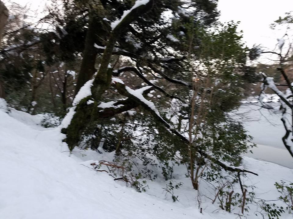 高岡の将来を考える・・・ 2018/02/11 高岡古城公園の雪害状況「非常事態」 その2 2018年の豪雪。まず、1月11日(木)から12日(金)にかけて、豪雪が北陸地方を襲い、高岡で80cm以上の積雪。そして、先日2月5日(月)から6日(火)にかけて、再び同じレベルの豪雪。先月の豪雪の後、高岡古城公園(国指定史跡・高岡城跡)の雪害状況を、当ブログでも取り上げました。(参考:高岡古城公園の雪害状況「非常事態」)当時の報道では、少なくとも桜の木など30本以上が倒木し、240本以上で15cm以上の太さの枝折れが生じたとのことでした。おそらく復旧もままならない状態だったと思います。そんな中で、今回の豪雪・・・。今回の豪雪の後、2月9日(金)に、再び状況を確認しに行きました。やはり多くの枝折れが見られました。先月の豪雪で折れたのか、今回の豪雪で折れたのか、素人では判別はつきませんが・・・。しかし、先月の豪雪で折れたと思われる部分については、応急措置として枝そのものが切られていたので、恐らく枝折れが見られたのは今回新たに折れたものが多いと思われます。つまり、被害は拡大しています。北口駐車場から、雪が積もる階段を登って小竹藪へ。その最中、小竹藪側の斜面を撮影。雪害と思われる枝折れがありました。小竹藪その①コシノヒガン、タカオカコシノヒガンなどの桜が多く生息する箇所。枝折れがあります。小竹藪その②小竹藪その③幹ごとやられている木が・・・。小竹藪その④三の丸(市民体育館)から、本丸・朝陽橋方面を眺める手前の木(見にくいですが、写真左側)が枝折れしています。搦手口周辺奥に見えるのは、先月の豪雪で倒木し、法面が崩れた地点。倒木はそのままになっています。明丸(動物園)から、本丸を眺める本丸の斜面に「古城の滝」がある場所。その周辺の木が、倒木や枝折れしています。二の丸(市民体育館)に生える、大ケヤキ。樹齢400年以上と言われる大木にも、枝折れが見られました。二の丸(左)と本丸(右)を結ぶ土橋から、池ノ端方面を眺める本丸側の斜面の木、倒木しています。先月見た時と変わっていません。本丸入口から池ノ端、朝陽橋付近に至る通路(いわゆる「犬走り」)は、依然として通行禁止状態です。本丸から朝陽橋方面へと階段を下る最中、枝のもとから完全に折れてしまっている木を発見しました。朝陽橋から、中の島方面を眺める写真左側の木が、枝折れしています。朝陽橋から、三の丸方面を眺める斜面に生える木が倒木しています。ちなみに、朝陽橋はこんな状況。通行可能だったので通りましたが、橋の前後に階段があるので危ないし、橋自体この状況なので非常に危険です。通っていて、何度も心臓が止まりそうになりました。通行禁止すべきレベルです。さて、先日の報道では、復旧工事は早くて6月以降の着手になる見通しとのことで・・・。少なくとも、4月の桜まつりには全く間に合いません(高岡古城公園は、「さくら名所100選」です)。また、10月の万葉まつりにも間に合わない見通しとなっています。高岡古城公園、「非常事態」です。 http://kirittotakaoka.ria10.com/_blog/201802110000高岡古城公園の雪害状況「非常事態」 その2