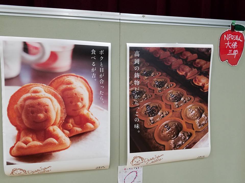 NPO法人 大佛三郎 2018/01/19 【イベント参加報告】なべ祭りにて、大佛三郎カステラ出店(1/13・14) 「第32回 日本海高岡なべ祭り」が開催された1月13日(土)・14日(日)。特定非営利活動法人大佛三郎で、今年もカステラ出店を行いました。今年は、高岡大和前(御旅屋メルヘン広場近く)の「高岡昆布飯」ブース内で、大佛三郎カステラの販売をさせていただきました。御旅屋通りの一等地とも言える場所での初出店でした。そして、ウイング・ウイング1階で同時開催の「ホーウルウルの森」に、今年も「カステラ焼き体験ブース」を出店。子どもたちを中心に、多くの皆様に体験していただきました。更に、14日(日)は大仏茶屋でも販売。ついに同時3箇所出店を果たしましたwまだまだ出店機会の少ない「大佛三郎カステラ」。なべ祭りの複数箇所同時出店で、多くの方に親しんでいただけて良かったなと思います。これからは、出店機会を増やしていけたらなと・・・。今後の展開に、ご注目ください!!(笑) http://kirittotakaoka.ria10.com/saburou/201801191500【イベント参加報告】なべ祭りにて、大佛三郎カステラ出店(1/13・14)