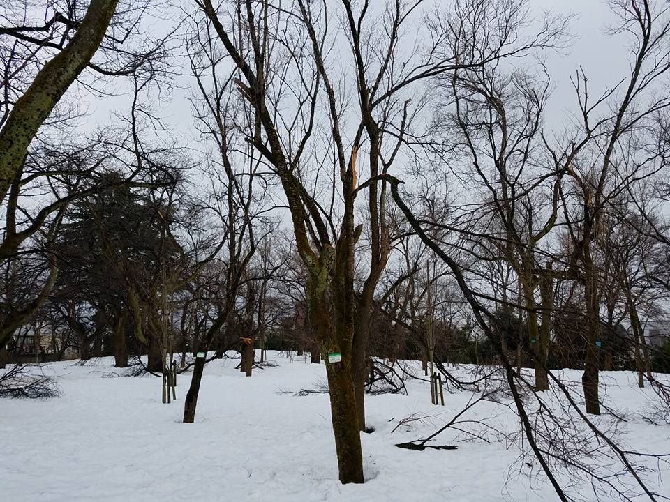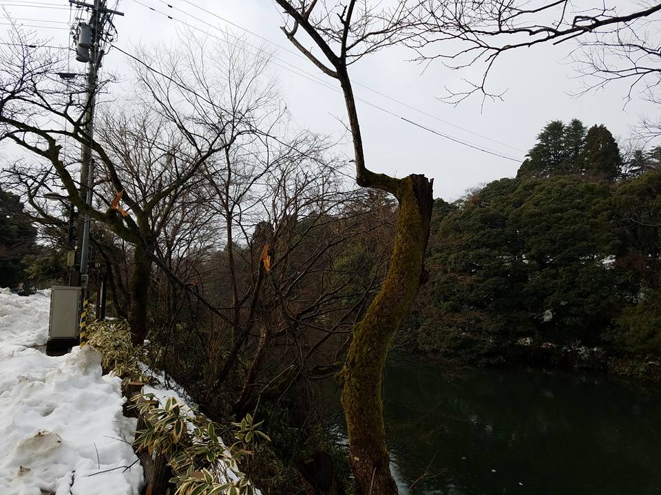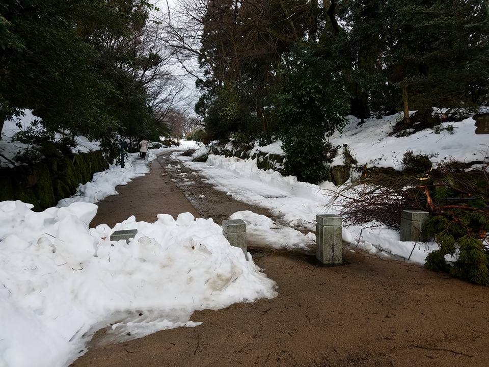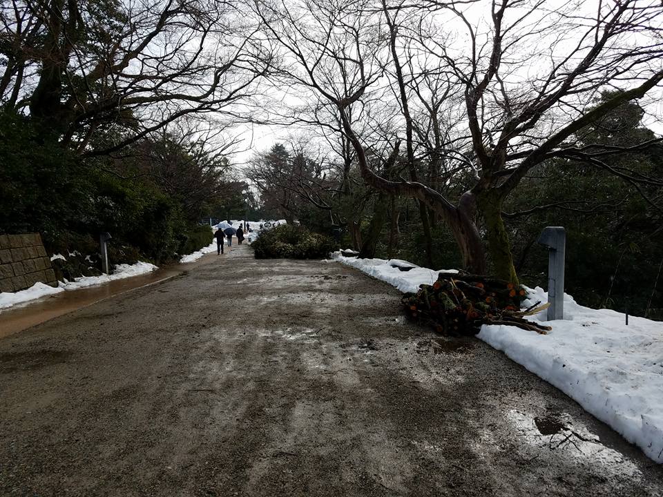 高岡の将来を考える・・・ 2018/01/24 高岡古城公園の雪害状況「非常事態」 1月11日(木)から12日(金)にかけての記録的な大雪。その被害は、高岡古城公園(国指定史跡・高岡城跡)に生息する植物にも及んでおります。大雪から1週間が経った、1月21日(日)に、その状況を見てきました。かなりひどい状況です。小竹藪その①このあたりは、コシノヒガンザクラが多く植えられておりますが、被害を受けております。小竹藪その②小竹藪その③古城公園固有品種「タカオカコシノヒガン」も、被害を受けております。小竹藪その④コシノヒガンザクラの被害状況。小竹藪その⑤小竹藪~梅林スダジイの大木も、被害を受けております。梅林~三の丸通路右側に、折れた枝がまとめられています。三の丸その①内堀側の木も、被害を受けております。三の丸その②朝陽橋を眺める絶景も、手前の木が折れてしまっています。搦手口その①沿道の樹木が複数倒れたため、1週間以上に渡り車両通行止めとなっていました。三の丸の市民体育館前の駐車場には、車が1台もありませんでした。搦手口その②倒木箇所。このように応急工事を行い、翌22日(月)に一部通行が可能となりました。搦手口その③明丸(動物園)に向かう道沿いの樹木も、幹から折れてしまっています。搦手口その④明丸側から、先程の倒木箇所が見えます。お堀側に倒れてしまっています。明丸その①明丸その②動物園入口から中を見ています。園内の樹木も被害を受け、立入禁止区間が存在しています。明丸その③明丸から、内堀を通して本丸を眺めています。「古城の滝」が見えますが、その横の木も被害を受けています。鍛冶丸その①鍛冶丸その②高岡市立博物館横の木も、被害を受けております。鍛冶丸その③鍛冶丸その④鍛冶丸から二の丸へ向かう土橋。鍛冶丸~二の丸その①鍛冶丸~二の丸その②二の丸~本丸その①二の丸~本丸その②雪囲いが、破壊されています。本丸その①射水神社や本丸広場の入り口付近。池ノ端や朝陽橋へ向かう犬走りが、倒木の影響で立入禁止となっています。本丸その②本丸広場入口。本丸その③本丸広場。本丸その④本丸広場から朝陽橋に向かう階段付近。幹ごと折れている木がありました。朝陽橋その①先程立入禁止となっていた犬走りの反対側。「朝陽の滝」にも行けません。朝陽橋その②朝陽橋その③中の島その①中の島その②中の島に植えられた「やまたちばな」、雪に埋もれて安否不明です。中の島その③中の島その④池ノ端本丸の崖から生えた木にも、被害が出ています。想像以上の被害状況でした。はっきり言って「非常事態」です。報道によると、少なくとも桜の木など30本以上が倒木し、240本以上で15cm以上の太さの枝折れが生じたとのことです。今週、再びの大雪。これ以上被害が拡大しないことを祈るばかりです。 http://kirittotakaoka.ria10.com/_blog/201801241800高岡古城公園の雪害状況「非常事態」