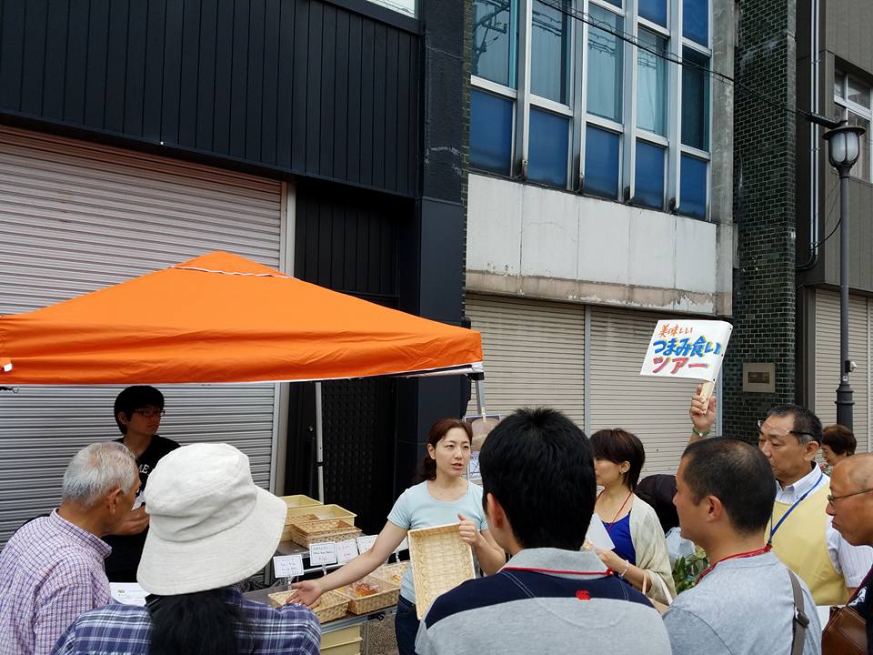 イベント参加報告 2017/08/16 【イベント参加報告】たかおか朝市 「つまみ食いツアー」(8/13) 8月13日(日)。毎月第2・第4日曜日の朝(冬期除く)に、高岡大仏前の坂下町通りで開催されている「たかおか朝市」へ。同日、朝市会場にて、「朝市つまみ食いツアー」が開催されました。今回、21名の方が参加されました。まずは、プロガイドさんのガイドで、高岡大仏を巡り・・・。同じく、プロガイドさんのガイドで、朝市に出店している食べ物屋さん6店を巡り、つまみ食い。ボリュームの多い内容で、「つまみ食い」ではなく「食い倒れ」という感想も寄せられるツアー(笑)でも、朝市をより楽しめるツアーだったと思います。その後は、坂下町公民館で開催された早起きセミナーに参加。有意義な朝を過ごすことができました。 http://kirittotakaoka.ria10.com/houkoku/201708160900【イベント参加報告】たかおか朝市 「つまみ食いツアー」(8/13)