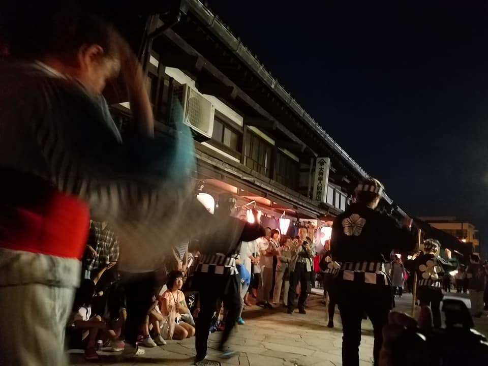 鋳物の作業唄「弥栄節(やがえふ)」に合わせた民謡踊りの街流しが、今年も金屋町の夜を彩りました。