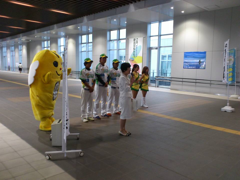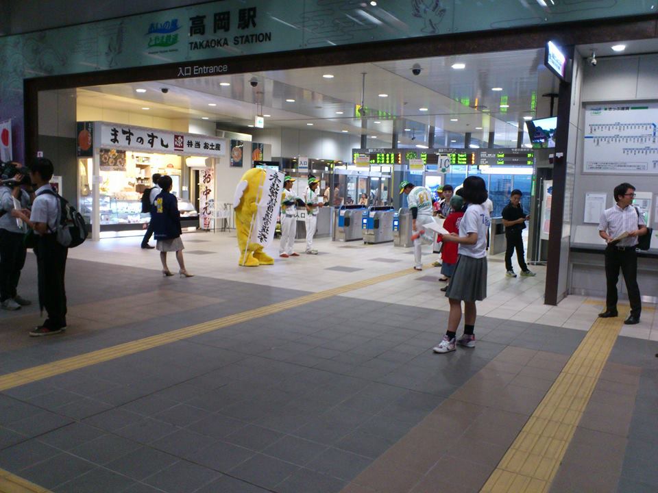 T-voice(高岡市選挙啓発サポーター) 2016/06/25 【イベント参加報告】参院選啓発活動出発式(6/24) 選挙のめいすいくんです。投票箱をモチーフにしており、頭には票を入れる穴。そして・・・。背中には鍵がついております。6月24日(金)、高岡駅で参院選啓発活動の出発式が開催されました。プロ野球独立リーグ・ルートインBCリーグ 富山GRNサンダーバーズの選手と、高岡市選挙啓発サポーター「T-voice」最年少メンバー(女子高生)による始球式「一票入魂セレモニー」が開催。一票入魂セレモニーの後、高岡駅改札前で選挙啓発グッズの配布を行いました。なお、この選挙啓発活動の様子は、本日25日(土)の富山新聞朝刊に取り上げていただきました。雷鳥軍団、投票呼び掛け 高岡駅で啓発運動(富山新聞 2016年6月25日)(上記記事より引用) 7月10日投開票の参院選で、高岡市明るい選挙推進協議会などは24日、高岡駅周辺で街頭啓発運動を実施し、通行人らに投票を呼び掛けた。 同協議会のほか市選挙管理委員会や、市の若者を中心とした選挙啓発サポーターグループ「T-voice」、富山GRNサンダーバーズの選手ら約20人が参加し、チラシやポケットティッシュを駅利用者に手渡した。(引用終わり) http://kirittotakaoka.ria10.com/tvoice/201606251400【イベント参加報告】参院選啓発活動出発式(6/24)