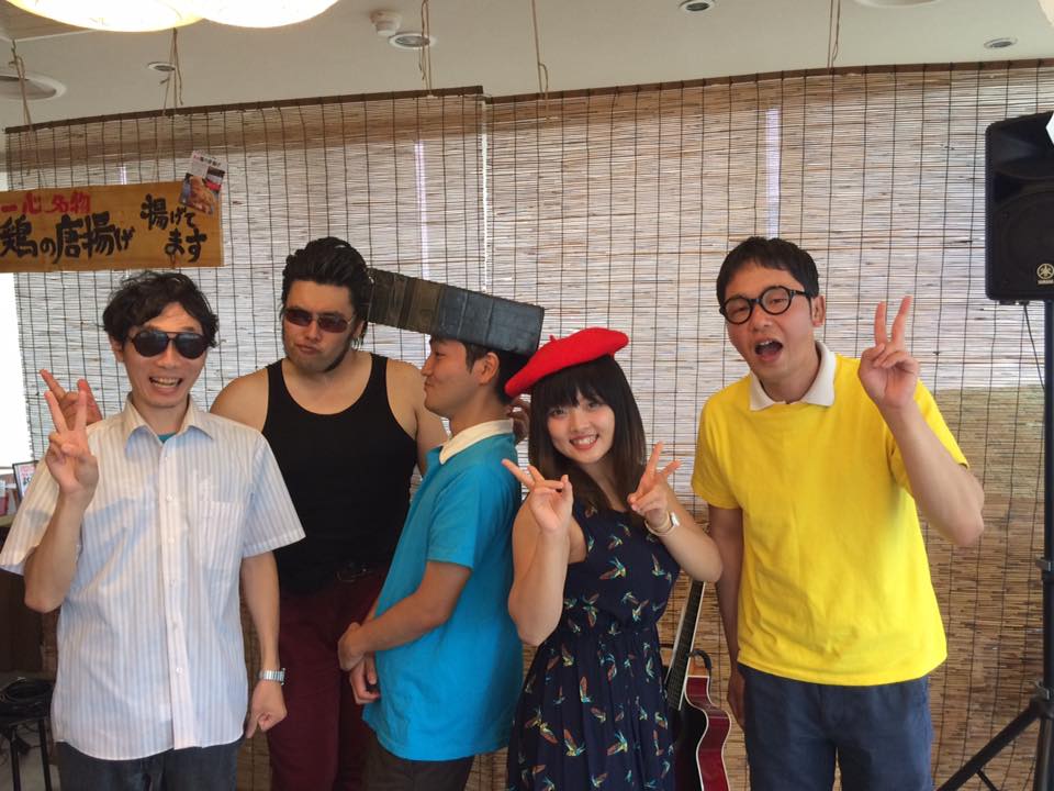 ドラえもんのまち高岡 2016/07/29 【イベント参加報告】第2回 藤子ファン交流会(7/24) 7月24日(日)。第2回 藤子ファン交流会に参加させていただきました。この日は、『忍者ハットリくん』に登場する獅子丸の誕生日。それから、お笑いユニット「藤子FA宣言隊」で活躍されている高倉岡二さんの誕生日でもありました。というわけで、富山市内のココスで、獅子丸と高倉さんの誕生会。そして、今月いっぱいで芸人を引退される高倉さんの送別会も開催されました。その後、富山城のすぐそばにある、ラーメン一心丸の内店へ。この日、一心ほっと空間ライヴが開催。以前、ジャイアン役として藤子FA宣言隊と共演した、キトキトロケンローラー寅さんがゲストでした。リオ五輪女子レスリングに出場する高岡市出身の登坂絵莉選手の応援ソングをはじめ、とっても楽しいライヴで盛り上がりました。のび太とスネ夫も寅さんライヴを応援!!・・・はい、わたくしまたしても、スネ夫の恰好をさせていただきました(笑)そして、ライヴ主催者のCHIHHIEさん(右から二番目)は、なんとジャイ子役(笑)CHIHHIEさんと言えば、出身地・小矢部市のイメージソング(高原兄さん作詞作曲)を歌うことが発表されましたね。こちらも今注目のアーティストです。ってかこの写真、芸人お二方、シンガーソングライターお二方という豪華メンバーの中で、私がセンターにいるという信じられない光景であります(^_^;)とにかく楽しませていただきました!!なお、次回の藤子ファン交流会は、8月7日(日)に高岡市野村のカラオケ店で開催される予定です。お時間のある方はぜひ、ご参加ください!! PR http://kirittotakaoka.ria10.com/doraemon/201607291600【イベント参加報告】第2回 藤子ファン交流会(7/24)