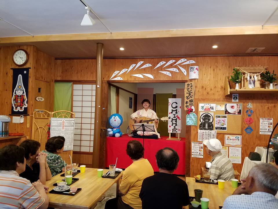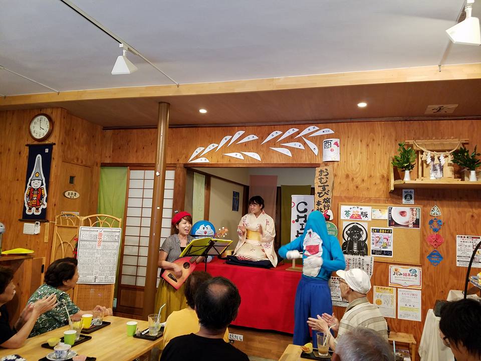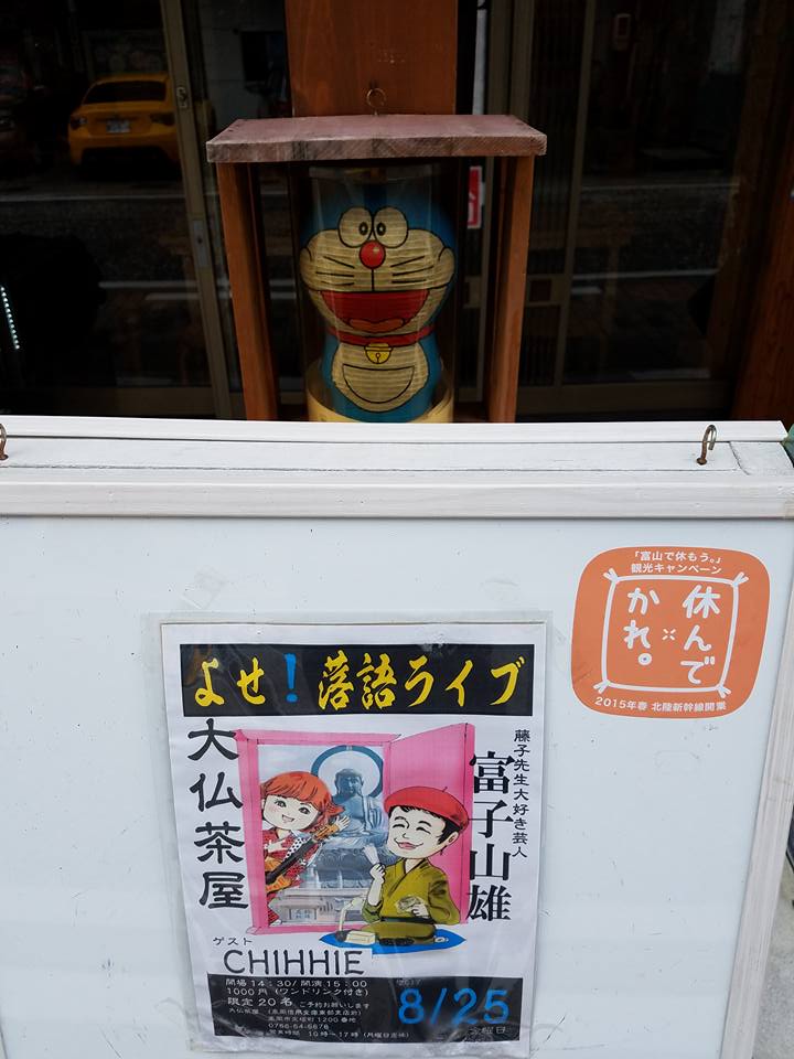 ドラえもんのまち高岡 2017/08/30 【イベント参加報告】よせ!落語ライブ(8/25) 8月25日(金)。大仏茶屋にて「よせ!落語ライブ」が開催されました。藤子先生大好き芸人・富子山雄さん主催のライブでした。落語家ではありませんが・・・ドラえもんにちなんだ創作落語を2席披露。富子さんの貴重な落語ライブです!そして、ゲストとして、小矢部市出身のシンガーソングライター・CHIHHIEさんが出演。この日、ついに1stミニアルバムの発売を果たしたCHIHHIEさん。アルバムに収録されている曲も披露してくれました。最後に、イベントチラシの絵を担当された、イラストレーター・yoshiemonさんによる特別ステージも!?平日の日中の開催でしたが、地域の皆様を中心に超満員でした。人であふれるっていいですね!高岡出身の偉人にちなんだイベントで、地域の賑わいに繋がったのではないでしょうか? PR http://kirittotakaoka.ria10.com/doraemon/201708302300【イベント参加報告】よせ!落語ライブ(8/25)