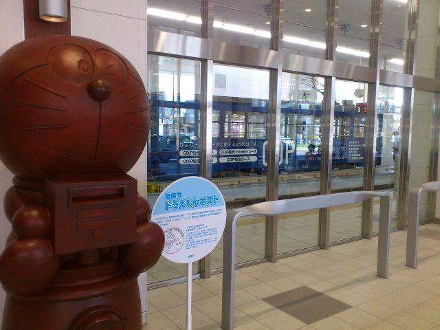 ドラえもんのまち高岡 2014/06/15 高岡駅「ドラえもんポスト」の設置場所が変わりました 高岡駅クルン高岡1F、万葉線ホーム前待合室に「ドラえもんポスト」が設置されておりましたが、その設置場所が変わりました。 (6月14日撮影)以前は北口広場側に設置されておりましたが、先日、万葉線ホーム側のこの場所に変わりました。この移動により、ドラえもんポストと、万葉線電車を同時にカメラに収めることができるようになりました。私が撮影した時は残念ながらドラえもんトラムでもアイトラムでも猫電車でもありませんでしたが・・・(笑)今度はぜひ、ドラえもんポスト・ドラえもんトラムのショットを撮ってみたいものです!また、ドラえもんポストはもちろん、投函できますので(ドラえもんの消印がつきます)、ぜひご利用になってください。 http://kirittotakaoka.ria10.com/doraemon/201406151430高岡駅「ドラえもんポスト」の設置場所が変わりました
