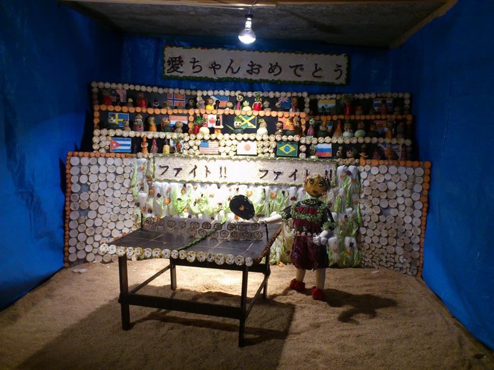 イベント参加報告 2016/09/28 【イベント参加報告】福岡町つくりもんまつり 全36作品紹介(11)~(20) 【イベント参加報告】福岡町つくりもんまつり 全36作品紹介(1)~(10)(11)錦帯橋製作者:橋上町つくりもん有志の会展示場所:宮本孝邸車庫(12)がんばれ熊本!加藤清正の虎退治製作者:西町自治会展示場所:矢竹宅車庫(13)閻魔大王製作者:堀川町自治会展示場所:大野てる子邸車庫(14)みんな集まれ!!福岡っ子オリンピック製作者:高岡市立福岡小学校3年生展示場所:ミュゼふくおかカメラ館駐車場地元小学生による作品。(15)競歩 谷井選手頑張れ製作者:高岡向陵高校 生活系チーム展示場所:ミュゼふくおかカメラ館駐車場こちらは高校生による作品。(16)復興 熊本県頑張れ製作者:高岡向陵高校 生活系チーム展示場所:ミュゼふくおかカメラ館駐車場こちらも高校生による作品。(17)未来へつなごう!日本遺産製作者:福岡高校美術部展示場所:ミュゼふくおかカメラ館駐車場地元・福岡高校生の作品。熊本城です。(18)秋の五箇山製作者:中央通り3班展示場所:中央通り中野宅車庫(19)金メダル獲得 登坂絵莉選手製作者:北陸銀行福岡支店展示場所:北陸銀行福岡支店登坂絵莉選手が、つくりもんになりました。(20)「わん・にゃんPark」にゃんばーわん製作者:㈱北日本新聞サービスセンター展示場所:㈱北日本新聞サービスセンター真ん中は、「安倍マリオ」ですね。 http://kirittotakaoka.ria10.com/houkoku/201609281800【イベント参加報告】福岡町つくりもんまつり 全36作品紹介(11)~(20)