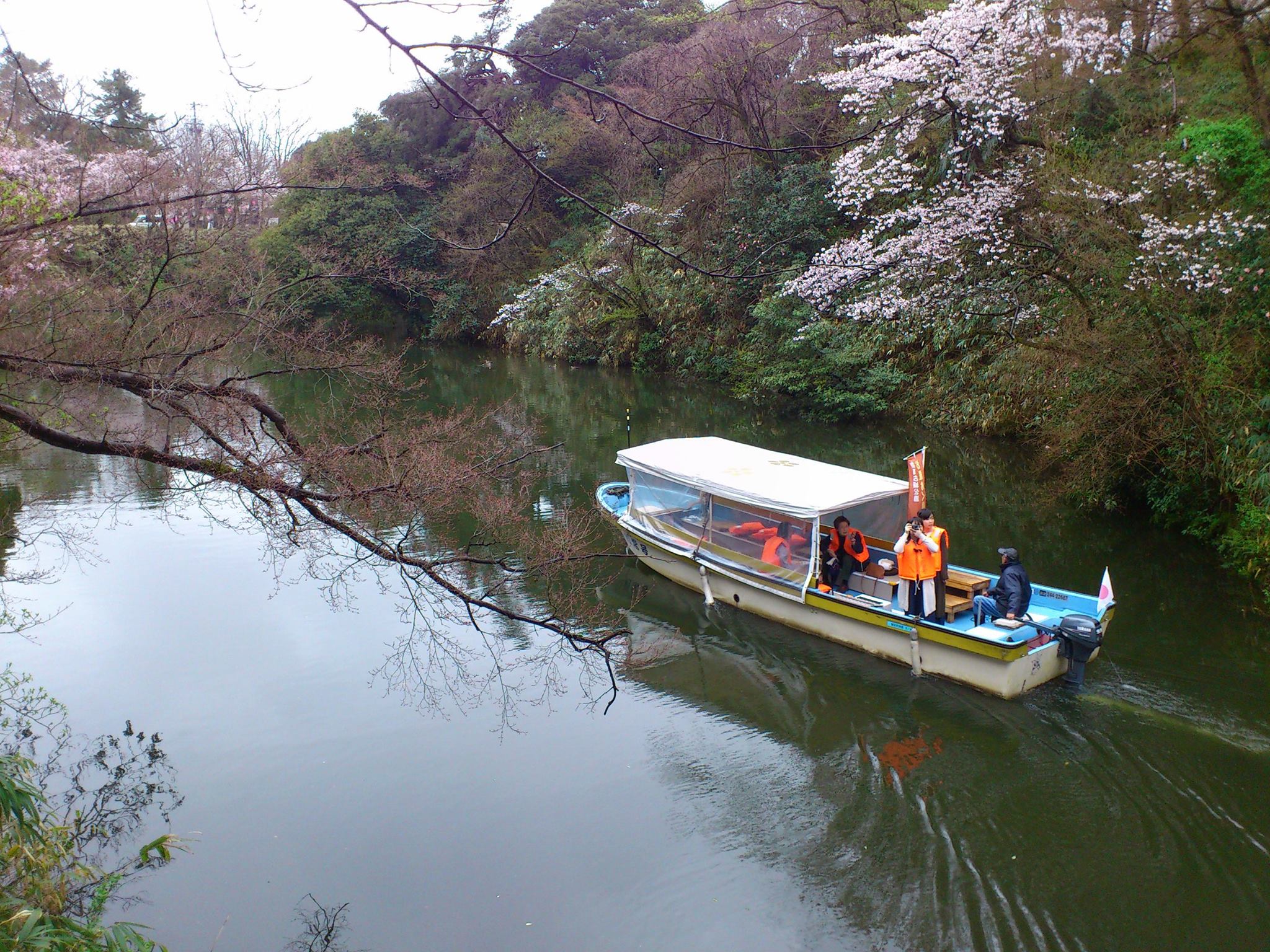 イベント参加報告 2017/04/20 「高岡古城公園 お濠めぐり遊覧船」に乗船しました(4/14) ★詳しい情報はこちら★高岡古城公園 お濠めぐり遊覧船(外部リンク) 乗船案内(公式ホームページより)今年も4月1日から運航が始まりました、「高岡古城公園 お濠めぐり遊覧船」。高岡古城公園(国指定史跡・高岡城跡)のお堀を、優雅に楽しむことができる遊覧船。桜が散り始めを迎えた4月14日(金)。5年ぶりくらいでしょうか。乗船してきました。公園の北西側、池之端の乗船場からスタート。スタートして間もない、中の島・本丸間の風景です。このあたりはお堀が広く、桜をはじめとする木々にマッチしてとても綺麗な風景です。奥に見える赤い橋が、有名な「朝陽橋」です。本丸と小竹藪を結ぶ橋です。この後、橋の下をくぐります。写真に写っている舟と、すれ違いました。朝陽橋を過ぎ、三の丸周辺で右にカーブ。公園東側の明丸(動物園)と、本丸の間。本丸側に「古城の滝」があります。本丸の周囲は「犬走り」になっており、現在はお堀にとても近い遊歩道として親しまれていますが、お堀側からも犬走りがよく見えます。内堀を進み、鍛冶丸(博物館側)で右にカーブ。すると、石垣が見えます。石垣のところでUターン。これは本丸と二の丸(市民会館側)を結ぶ土橋で、両側に築城時の痕跡である石垣が残っています。こちらと反対側、それぞれ900個前後の石があるそうです。Uターンして再び朝陽橋に戻る時、お堀沿いに生える木々を撮影。こうやって見ると、すごい生え方しているなと・・・。再び朝陽橋をくぐり、中の島を眺めます。朝陽橋の上から眺めても、綺麗な景色。下から見るのもいいですね。中の島を間近に眺めることができました。スタート地点周辺に戻ったところで、いったん左に進みます。公園西側、「池之端」の桜を眺めました。こちらは15mの崖から生えるソメイヨシノが美しい景色です。池之端に架けられた橋の手前でUターンし、池之端乗船場に戻って乗船終了。以前乗ったのは夏場で(当時は夏にも運航されていました)、桜の季節は初めてでした。「さくらの名所100選」の古城公園をより楽しめる、素敵な時間でした。残念ながら桜は終わってしまいましたが・・・桜が咲いていなくても楽しめます!ぜひ、一度乗船してみてください!高岡古城公園 お濠めぐり遊覧船~運航日~2017年4月1日(土)・2日(日) 4月7日(金)から5月7日(日)まで毎日 5月13日(土)から28日(日)までの土曜・日曜 11月3日(祝・金)から11月26日(日)まで毎日~運航時間~10時~17時(最終16時30分発)乗船時間:20分~25分程度~定員~10名(大人)・・・※小人は3名で大人2名の扱い~料金~大人700円 小人(小学生以下)200円※3歳未満無料、障がい者及びその付添い人(1名まで)は半額 PR http://kirittotakaoka.ria10.com/houkoku/201704201700「高岡古城公園 お濠めぐり遊覧船」に乗船しました(4/14)